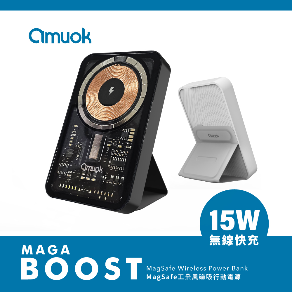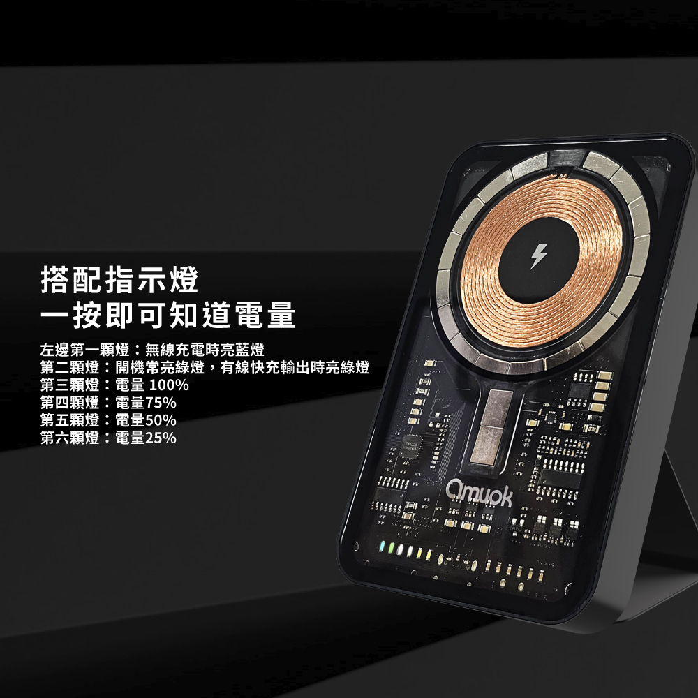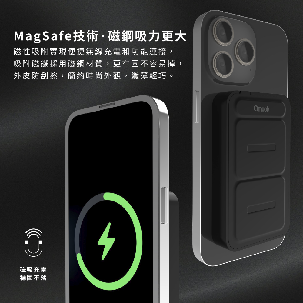 【amuok】5000mAh MagSafe-Compatible Industrial Magnetic Power Bank(Black)