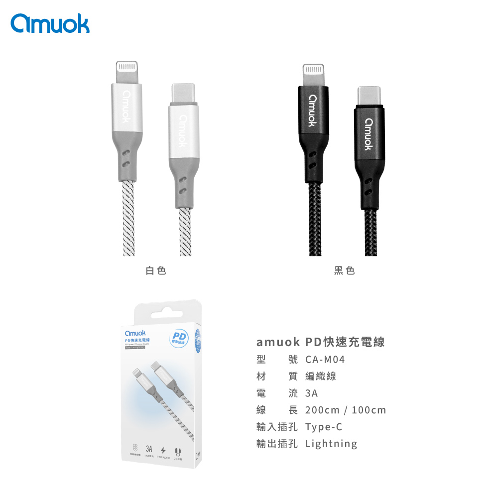 【amuok】PD Speed Charger Cable Type-C to Lightning-1M(Black)