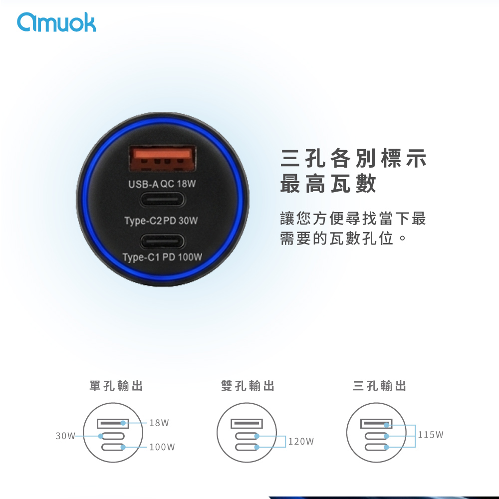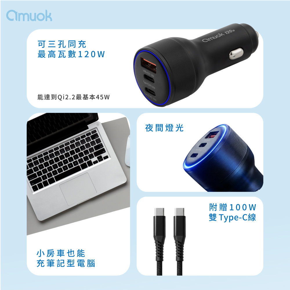 【amuok】120W All Power Fast Car Charger