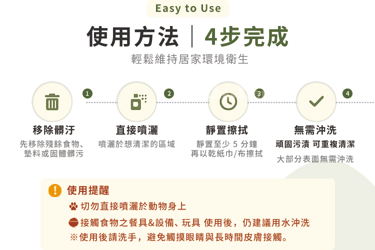 *如用於接觸食物的表面、食器或玩具時,仍建議用水沖洗。
