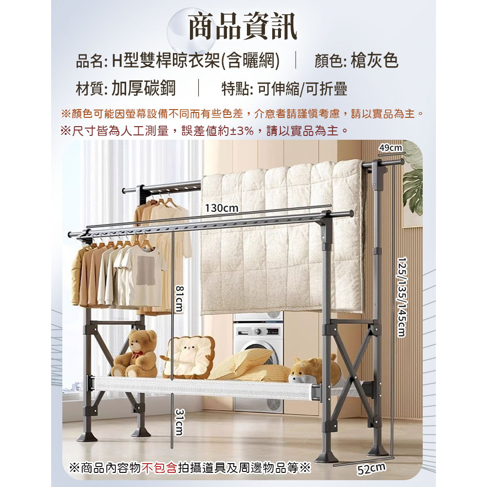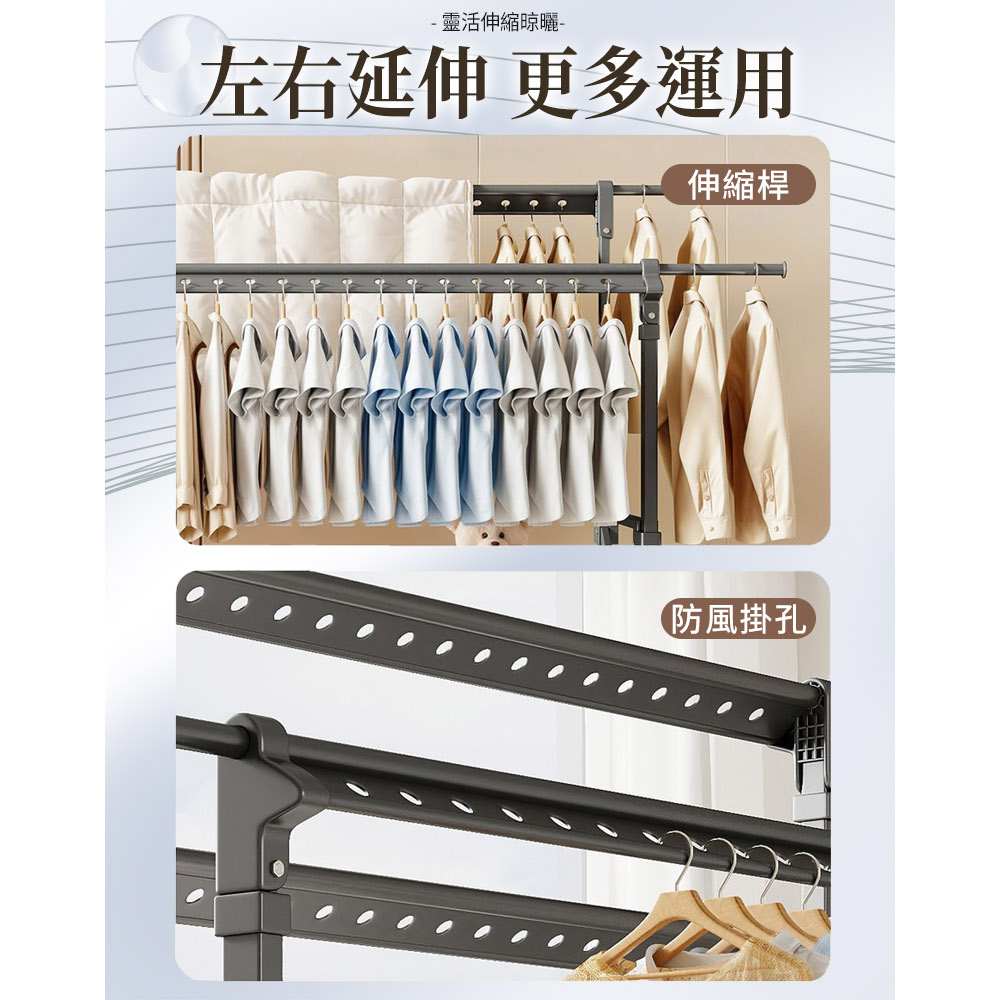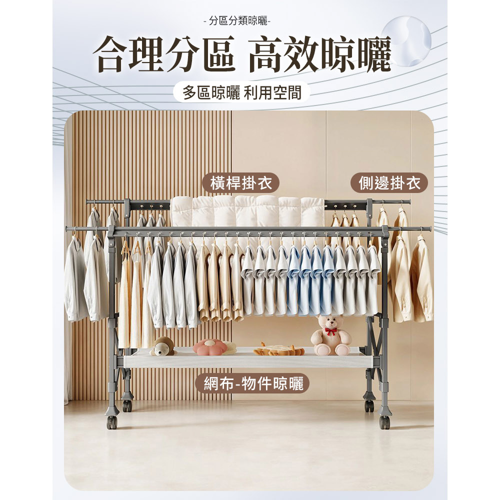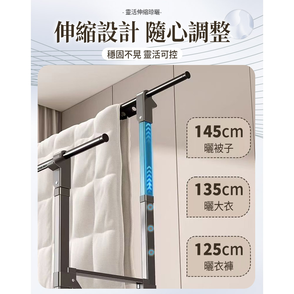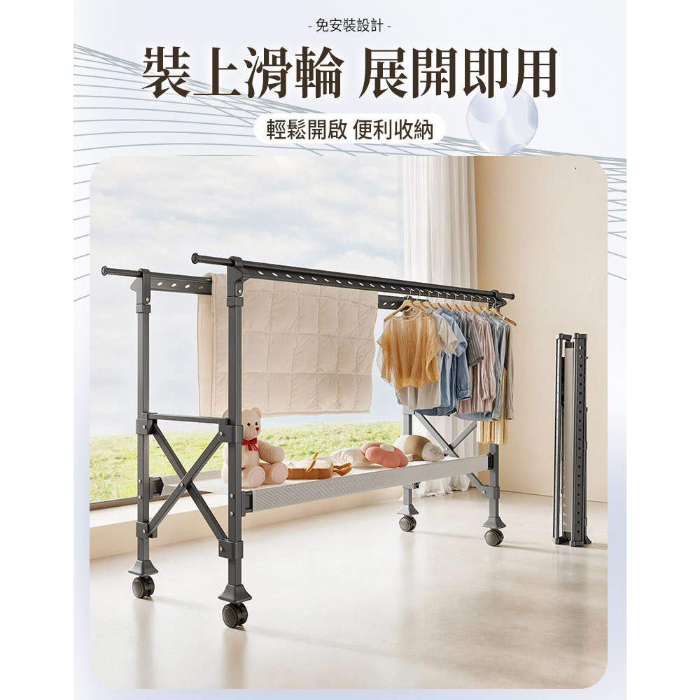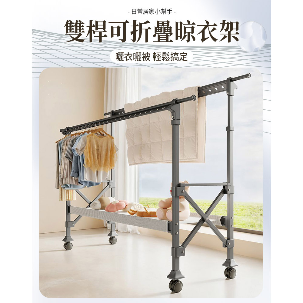 【AOTTO】H型雙桿附輪伸縮升降折疊曬衣架(HA-033)