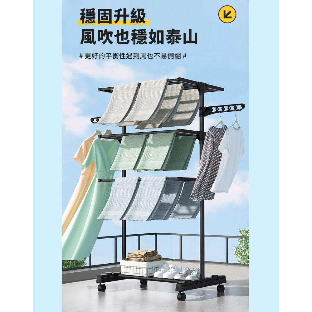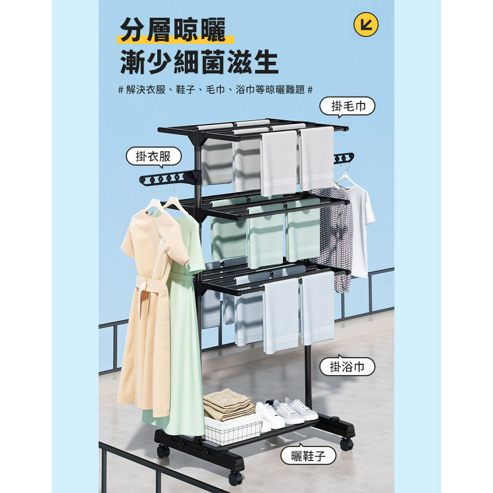 多功能加大分層晾曬 附輪設計 方便移動 加厚鋼管 穩固耐重