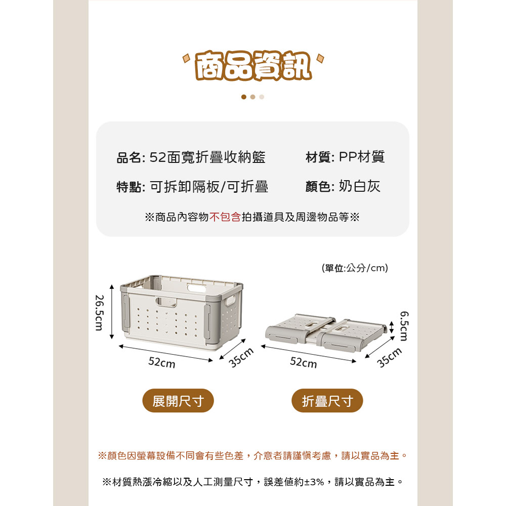 四面把手 方便搬運折疊收納 不佔空間加厚材質 堅固耐用尺寸:52*35*26.5cm±3%材質PP