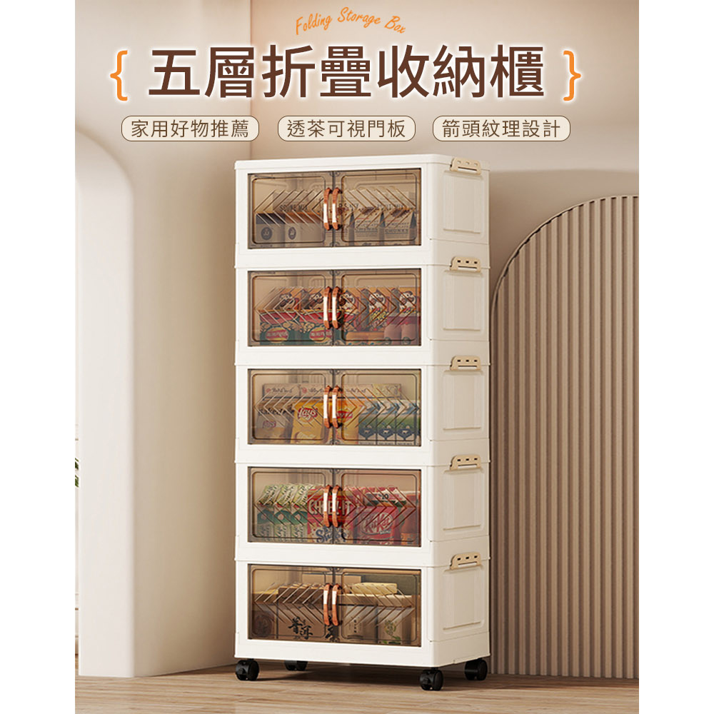 【AOTTO】50面寬雙開門透視磁吸五層折疊收納櫃(AC-5015)