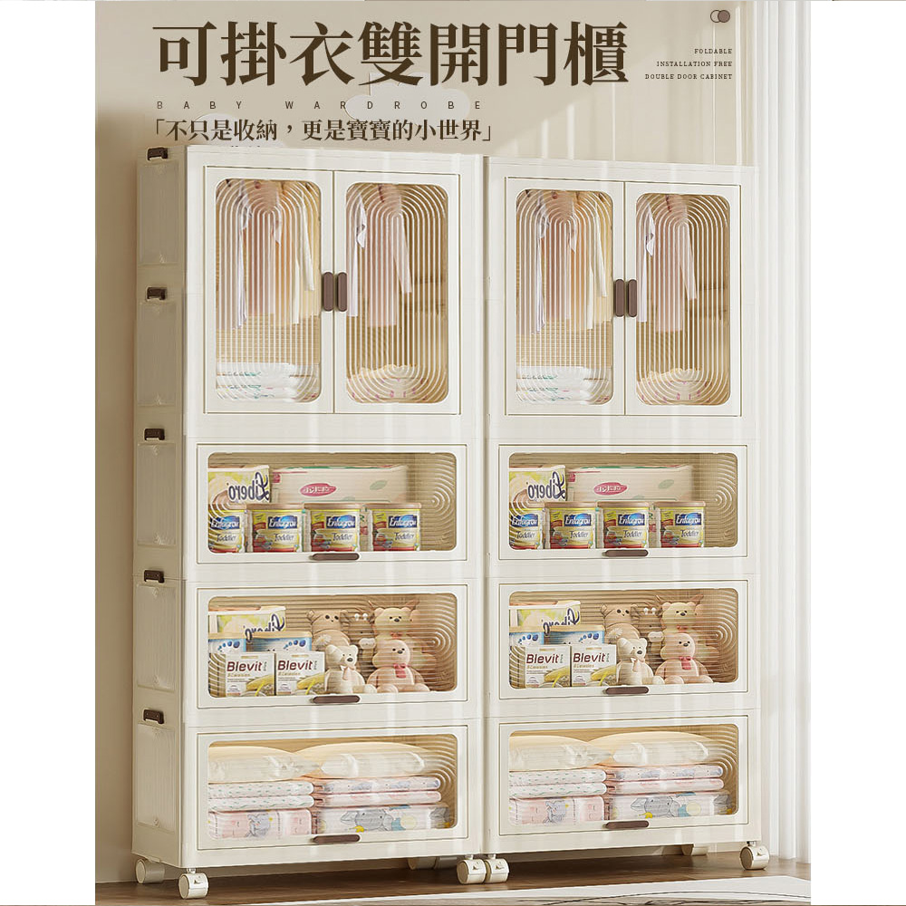 【AOTTO】57面寬雙開門上掀附輪折疊收納衣櫃(AT-602)