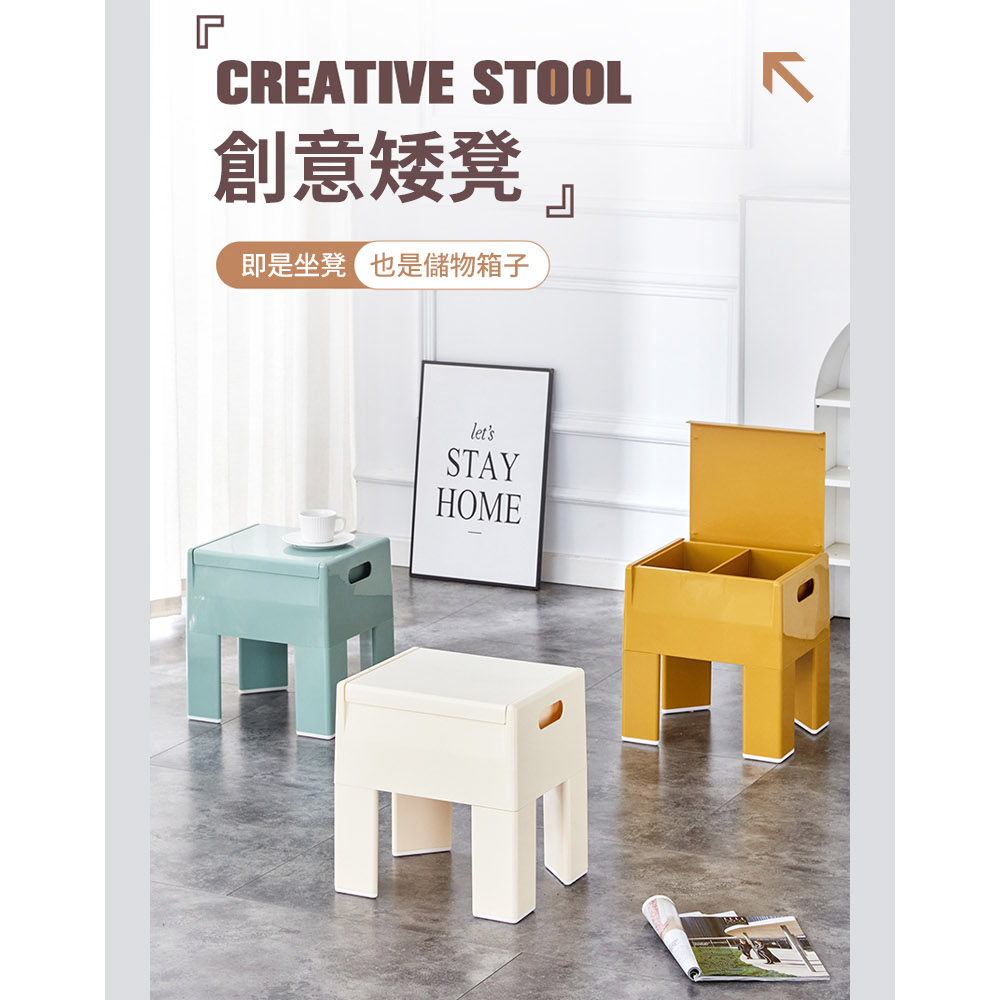 【AOTTO】簡約創意可收納防滑椅凳-白色(ID-004W)