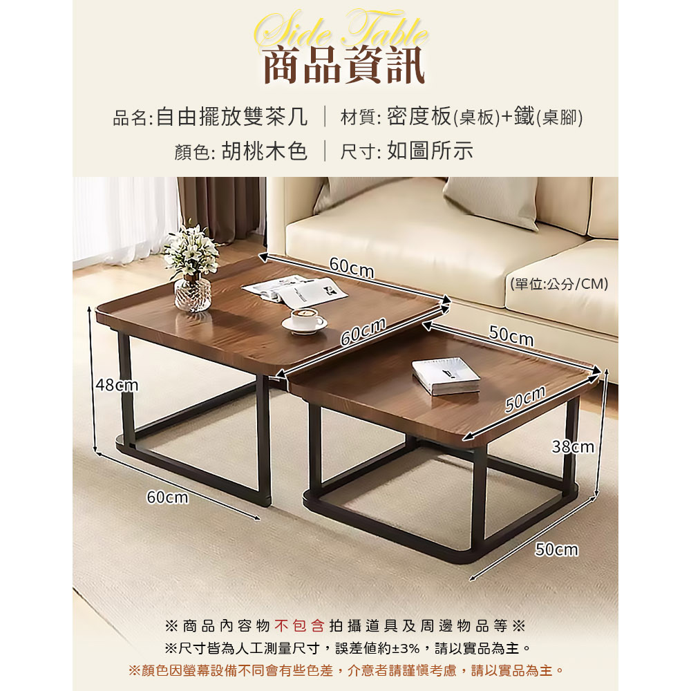 大+小 雙茶几組合 疊加使用 不佔空間 簡易組裝 自由擺放 桌邊圓潤 防止磕碰尺寸:大(60*60*48cm)