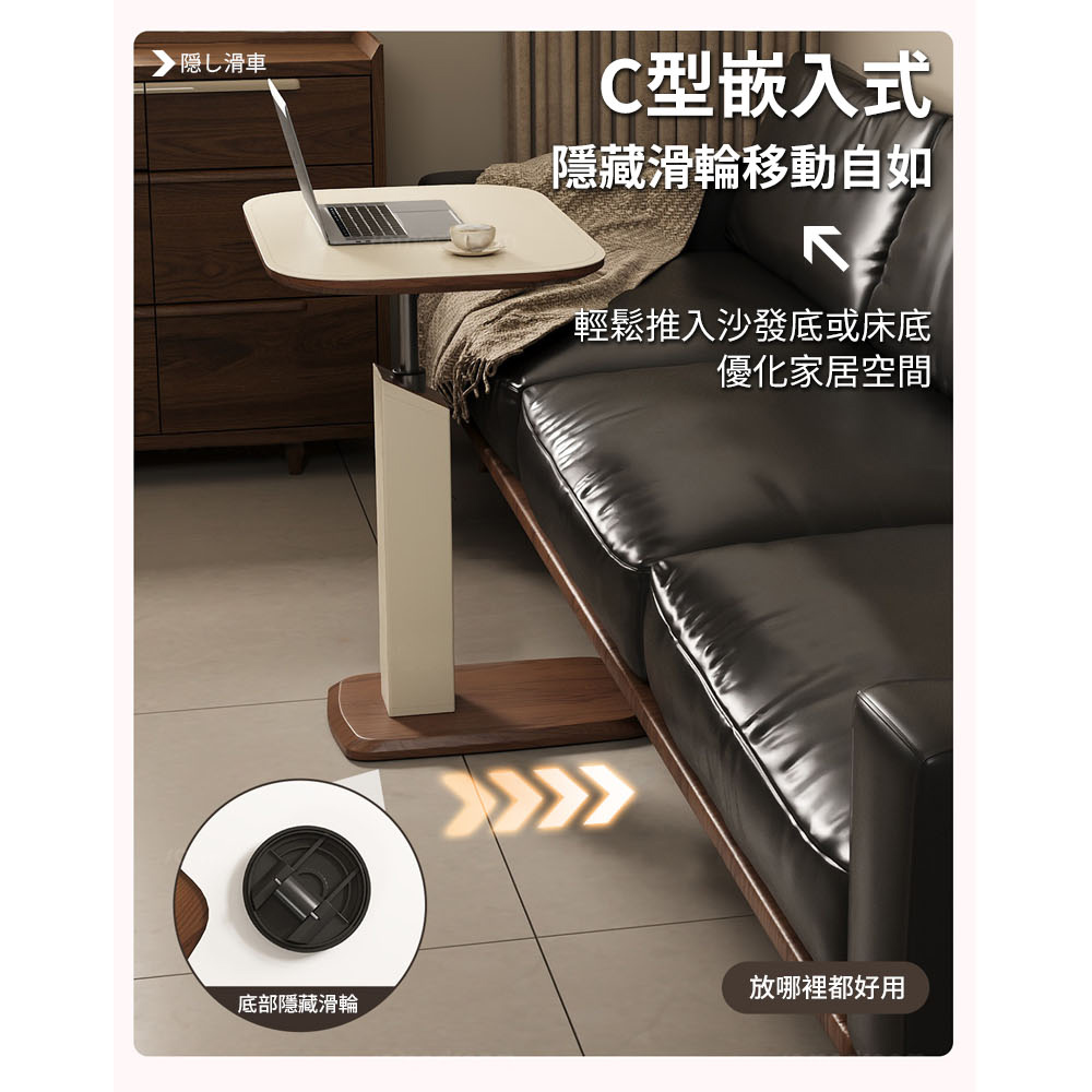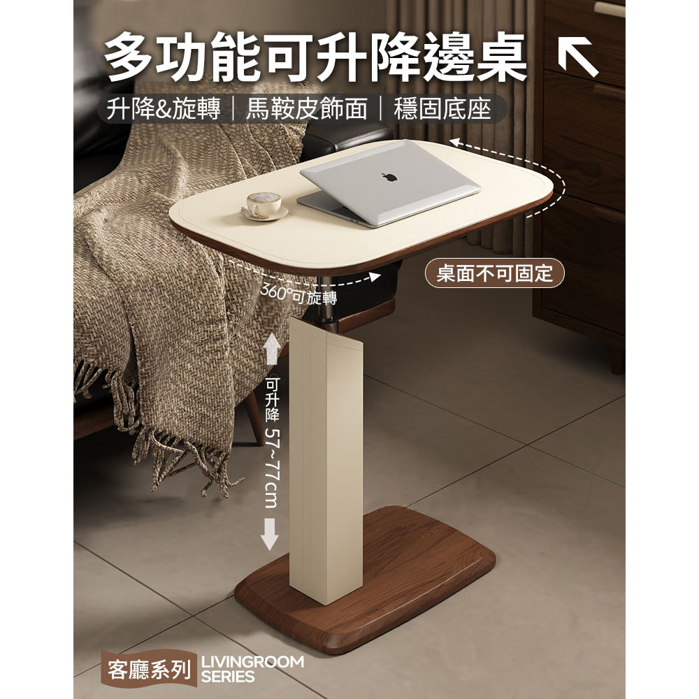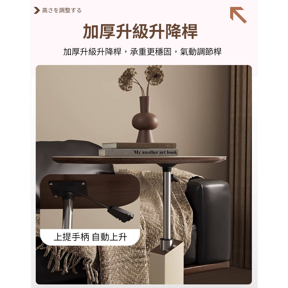 【AOTTO】奶油款可旋轉桌面升降邊桌-輕奢黑(FT-002BK)