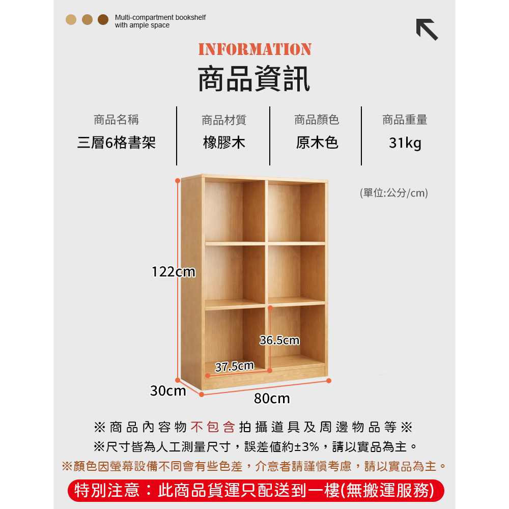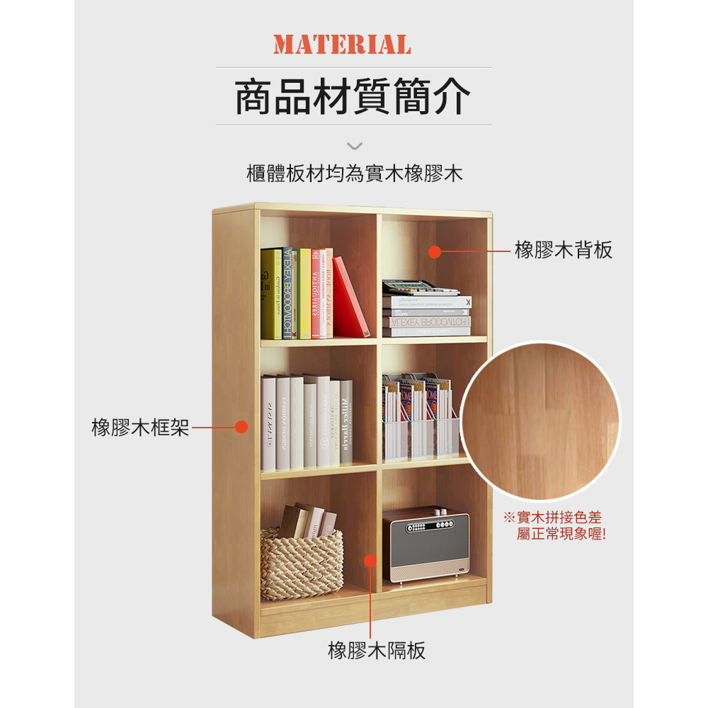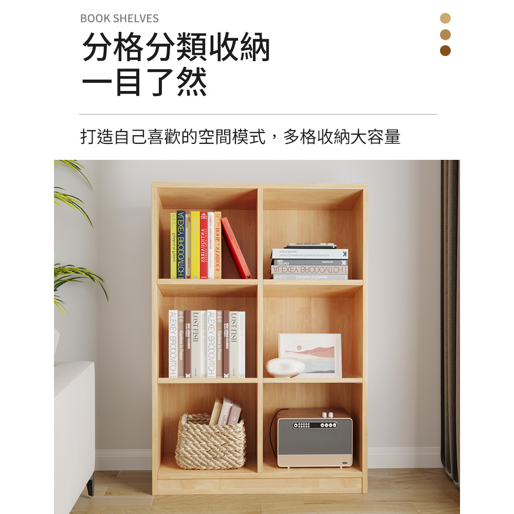 【AOTTO】簡約實木三層六格落地收納置物櫃/書櫃-80公分(WD-039)