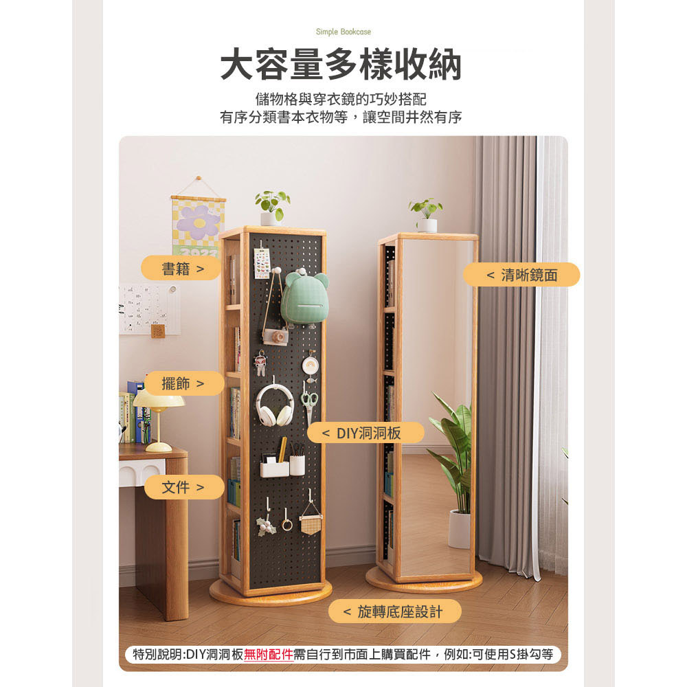 旋轉設計 收納+全身鏡大容量收納 不佔空間實木材質 堅固耐用尺寸:60*60*170cm±3%材質:實木