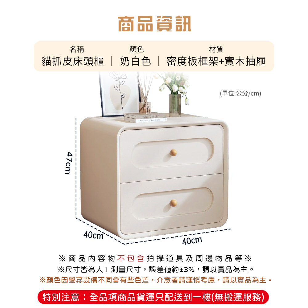 尺寸:40*40*47cm±3% 材質:密度板+實木抽屜