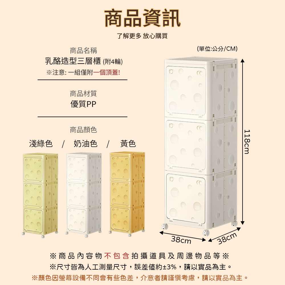 【AOTTO】38面寬乳酪造型附輪三層收納櫃-奶油色(AC-209W)
