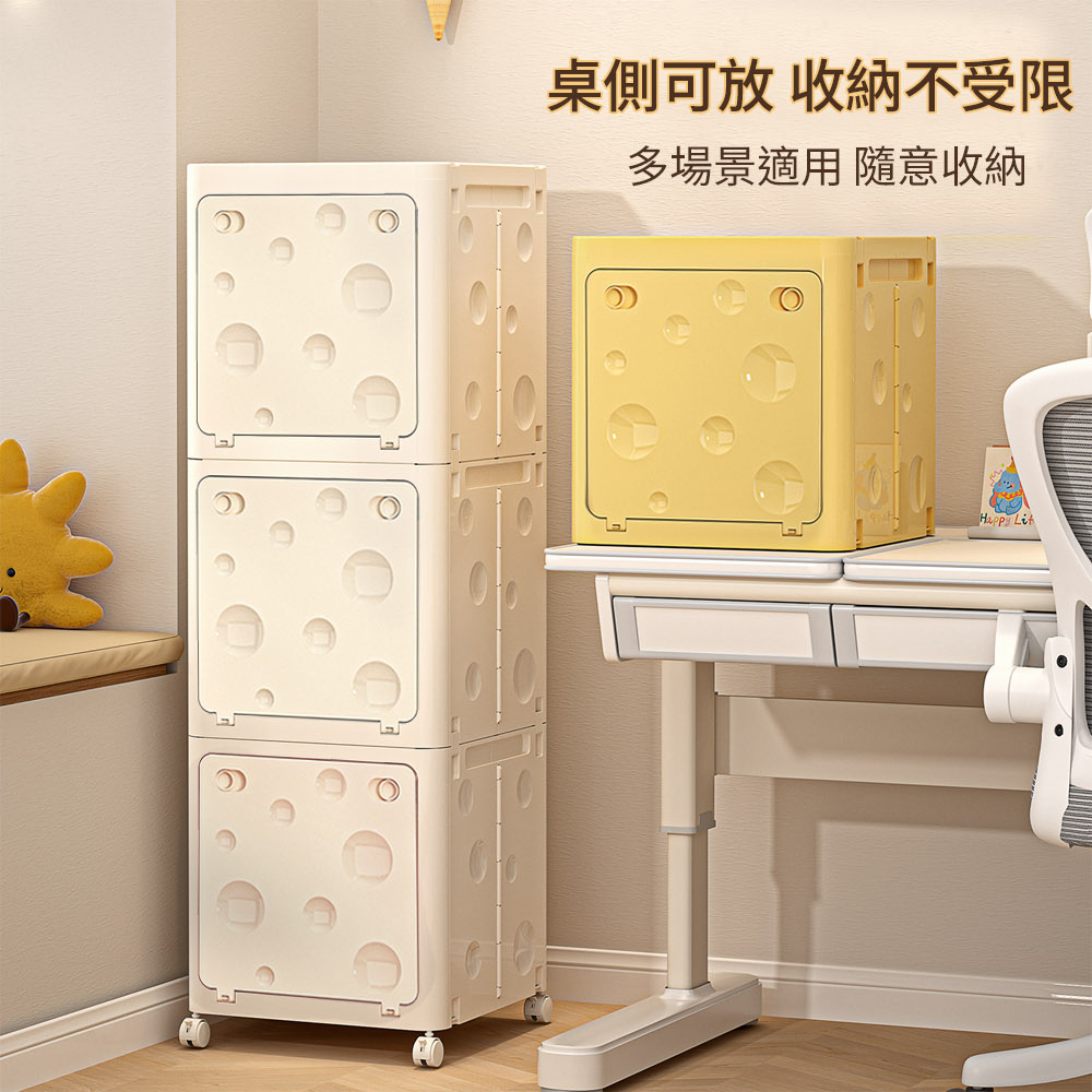 【AOTTO】38面寬乳酪造型附輪三層收納櫃-黃色(AC-209Y)