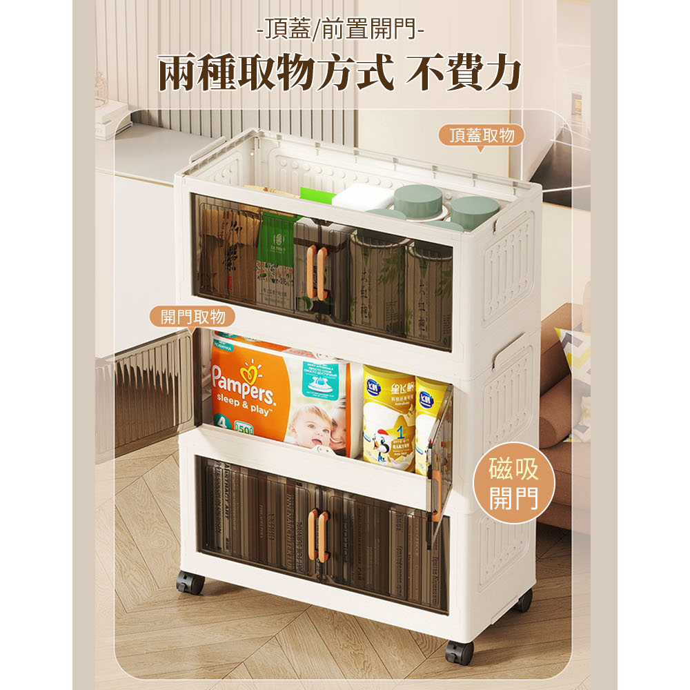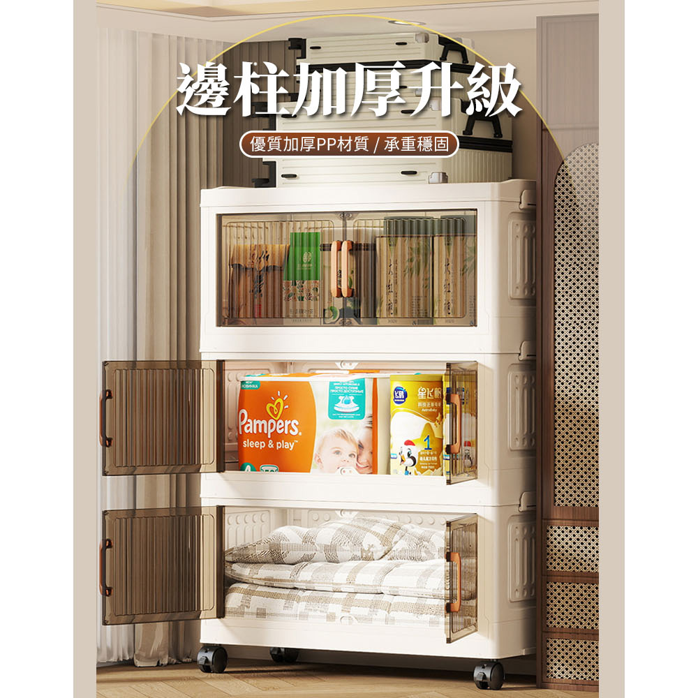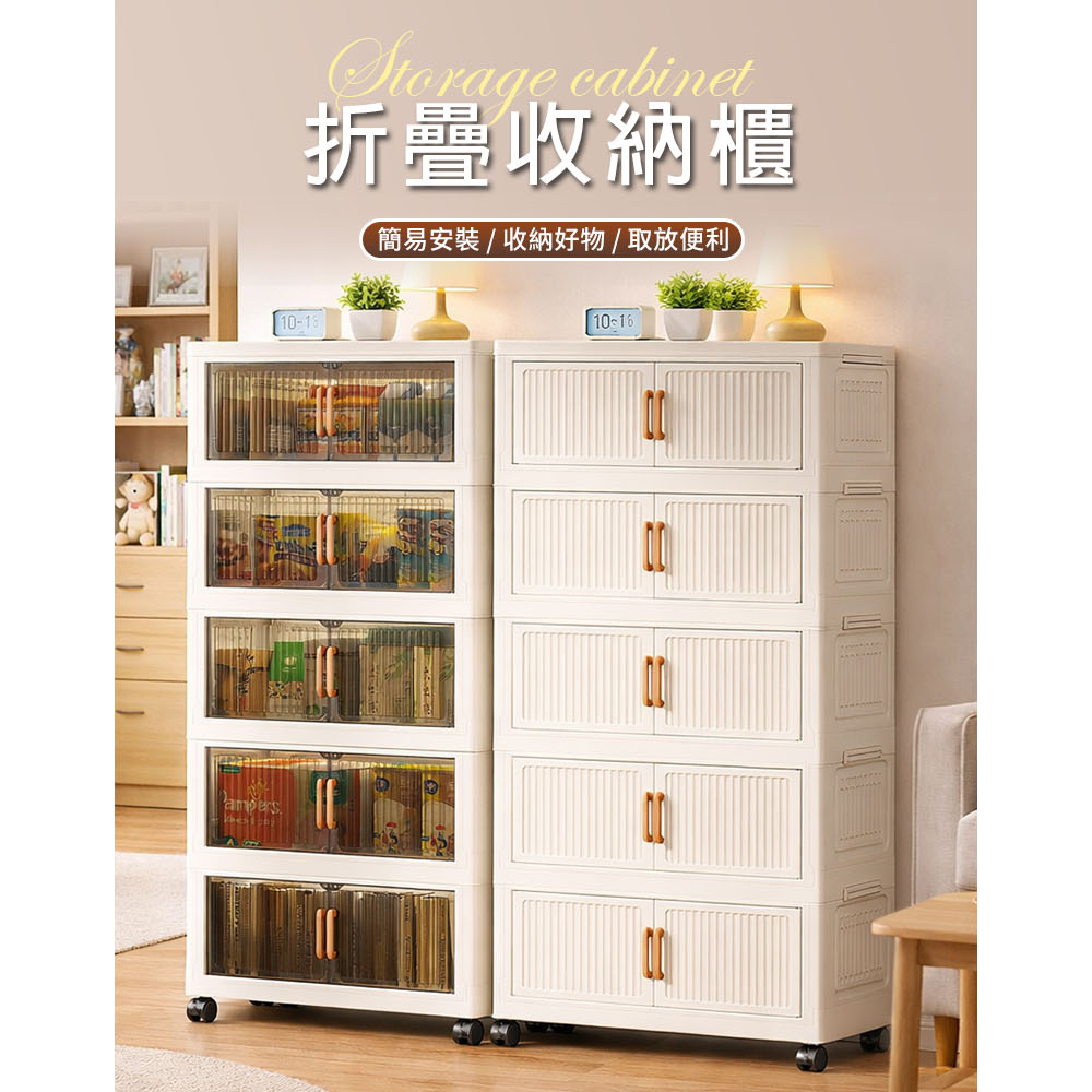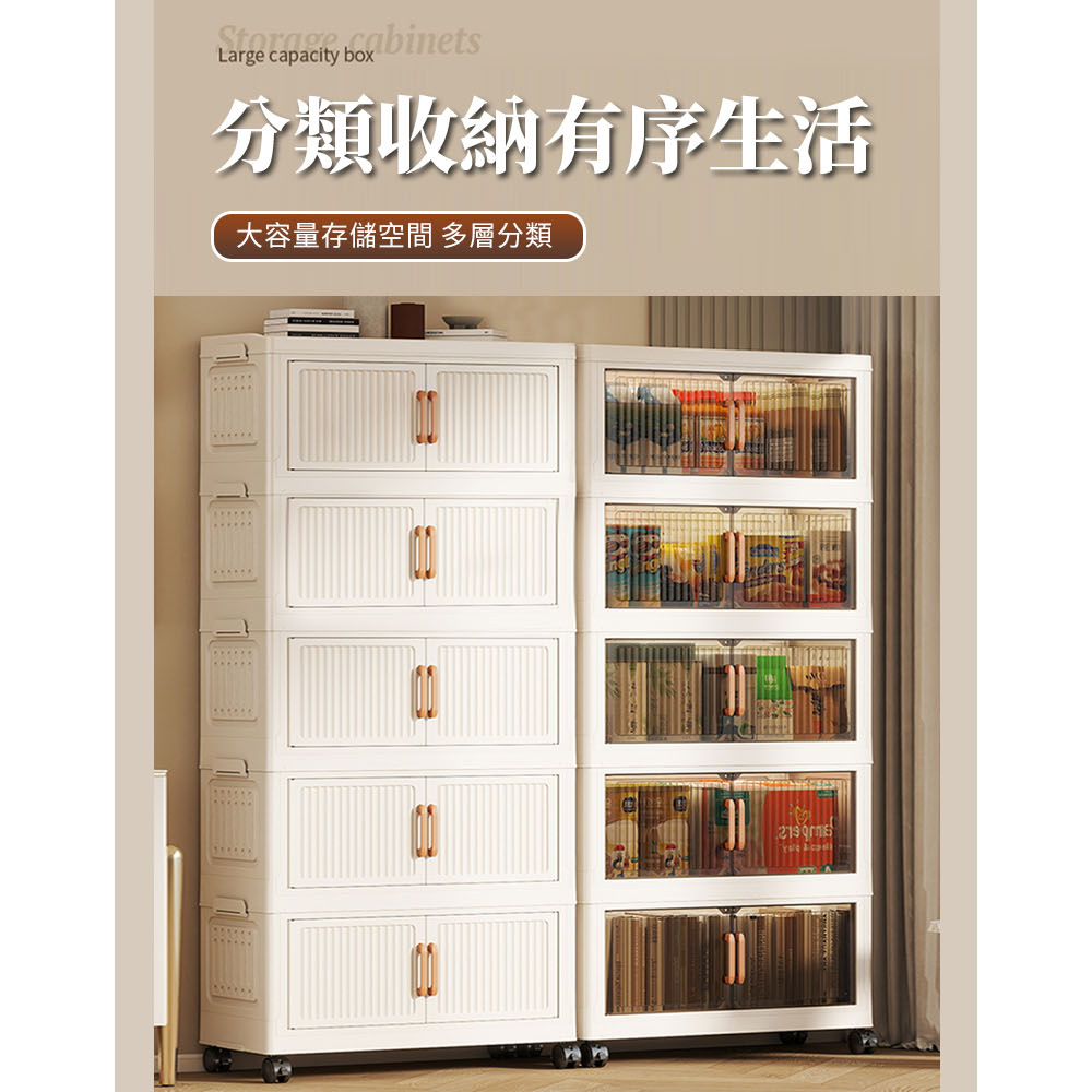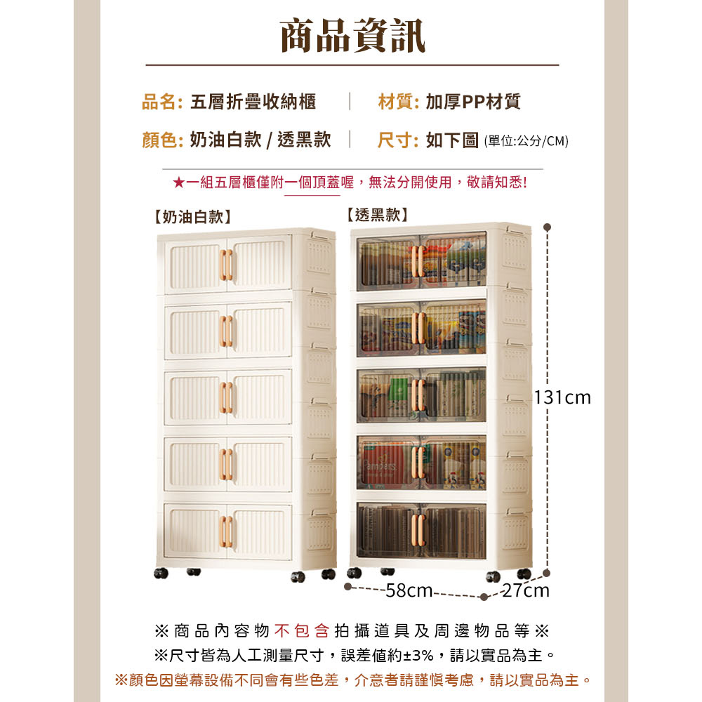 【AOTTO】58面寬五層折疊附輪雙開門收納櫃-透黑款(AC-058BK)