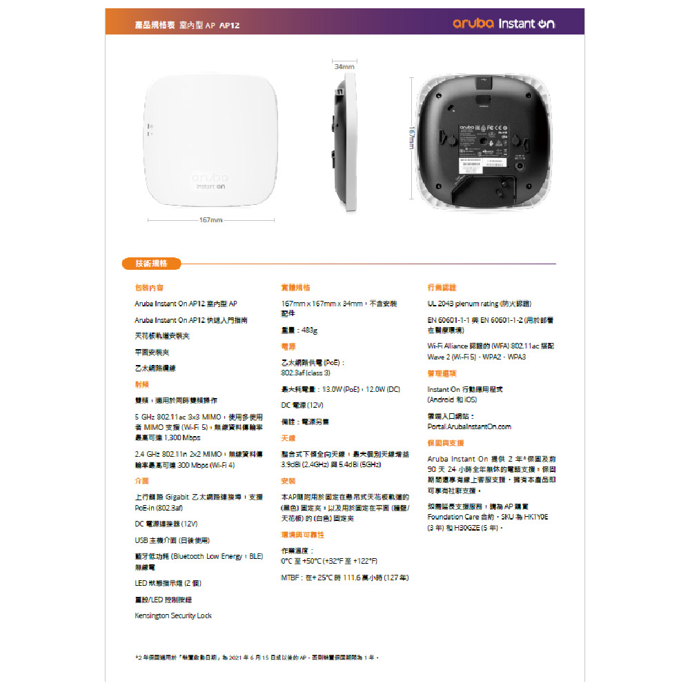昌運監視器Aruba HPE Networking Instant On 無線基地台AP12 室內型AP(R2X01A)