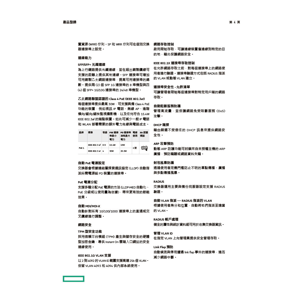 • 值得您信賴的安全功能:透過存取控制清單、IEEE 8021x 及 VLAN 流量切割,保護網路免於未經授權存取。