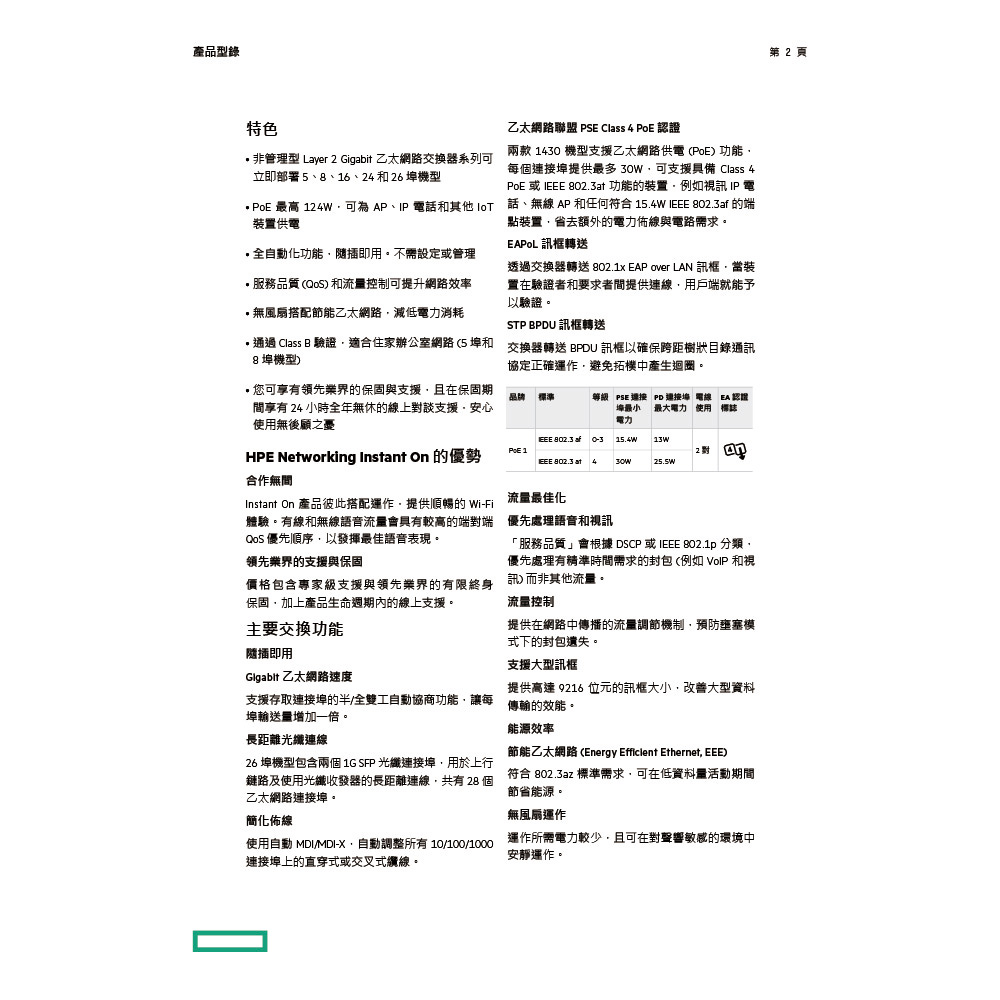 • PoE 最高 124W,可為 AP、IP 電話和其他 IoT裝置供電