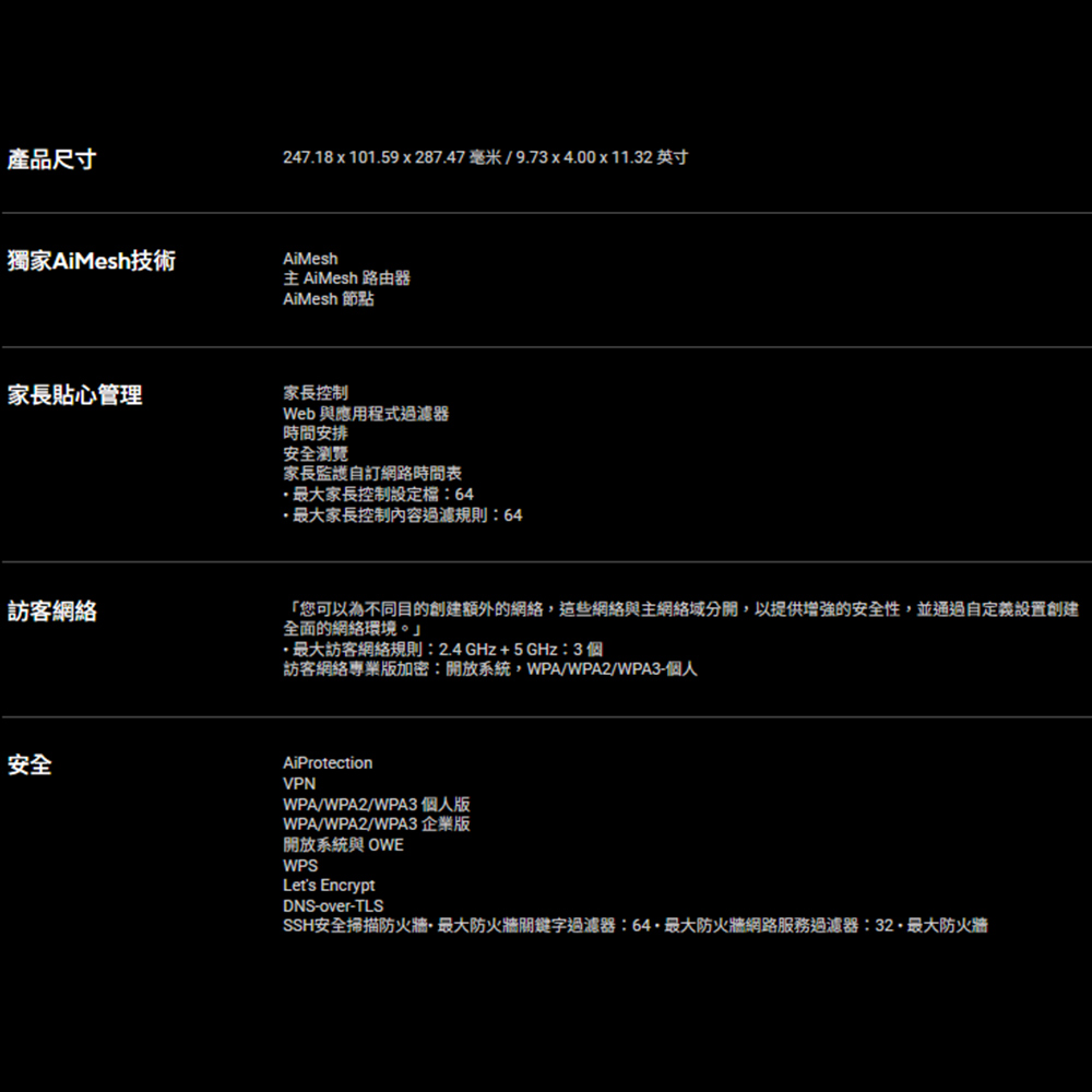 -無需訂閱的網路安全性 : 由Trend Micro™提供支援的商業級AiProtection Pro,以及一鍵式安全掃描和安全瀏覽功能。