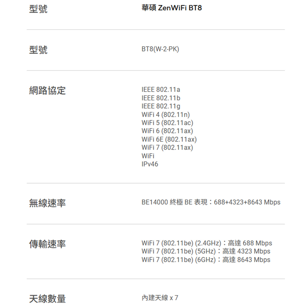 昌運監視器 ASUS華碩 ZenWiFi BT8 2入(雙入)二入 BE14000 三頻WiFi 7AiMesh 網狀路由器
