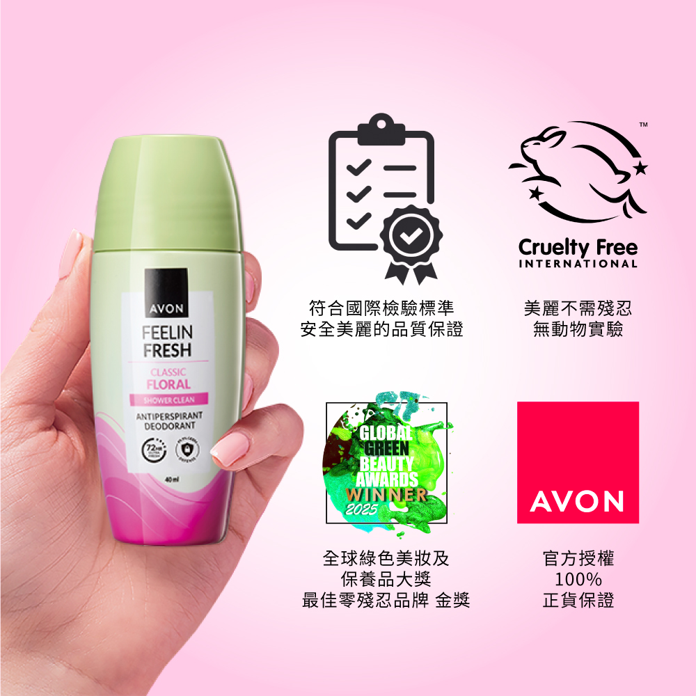 AVON升級版制汗體香劑系列,24H止汗× 72H抑味× 迷人體香,讓妳一次擁有!