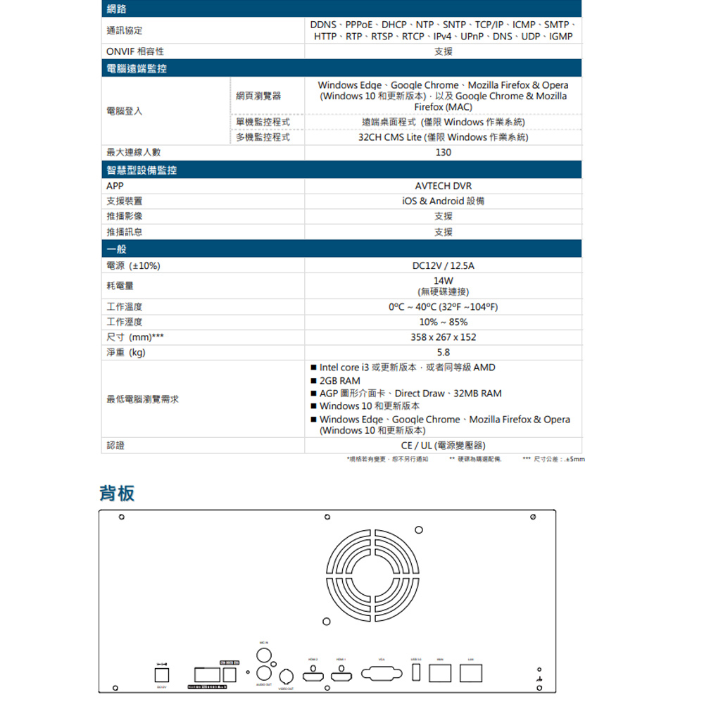 昌運監視器 AVTECH陞泰 DGH8564AIX-U1 IP 網路型錄影主機 64路支援安裝8顆硬碟