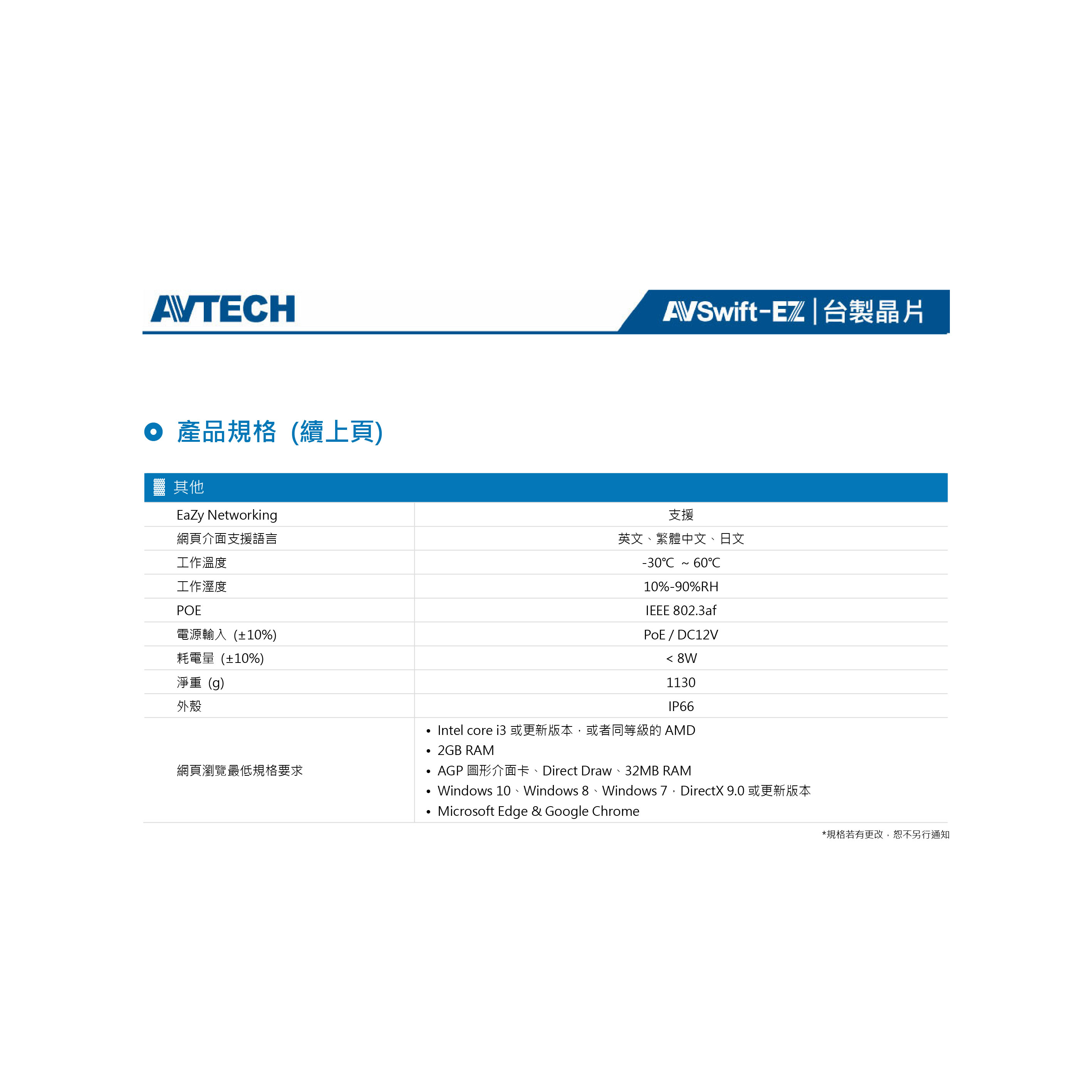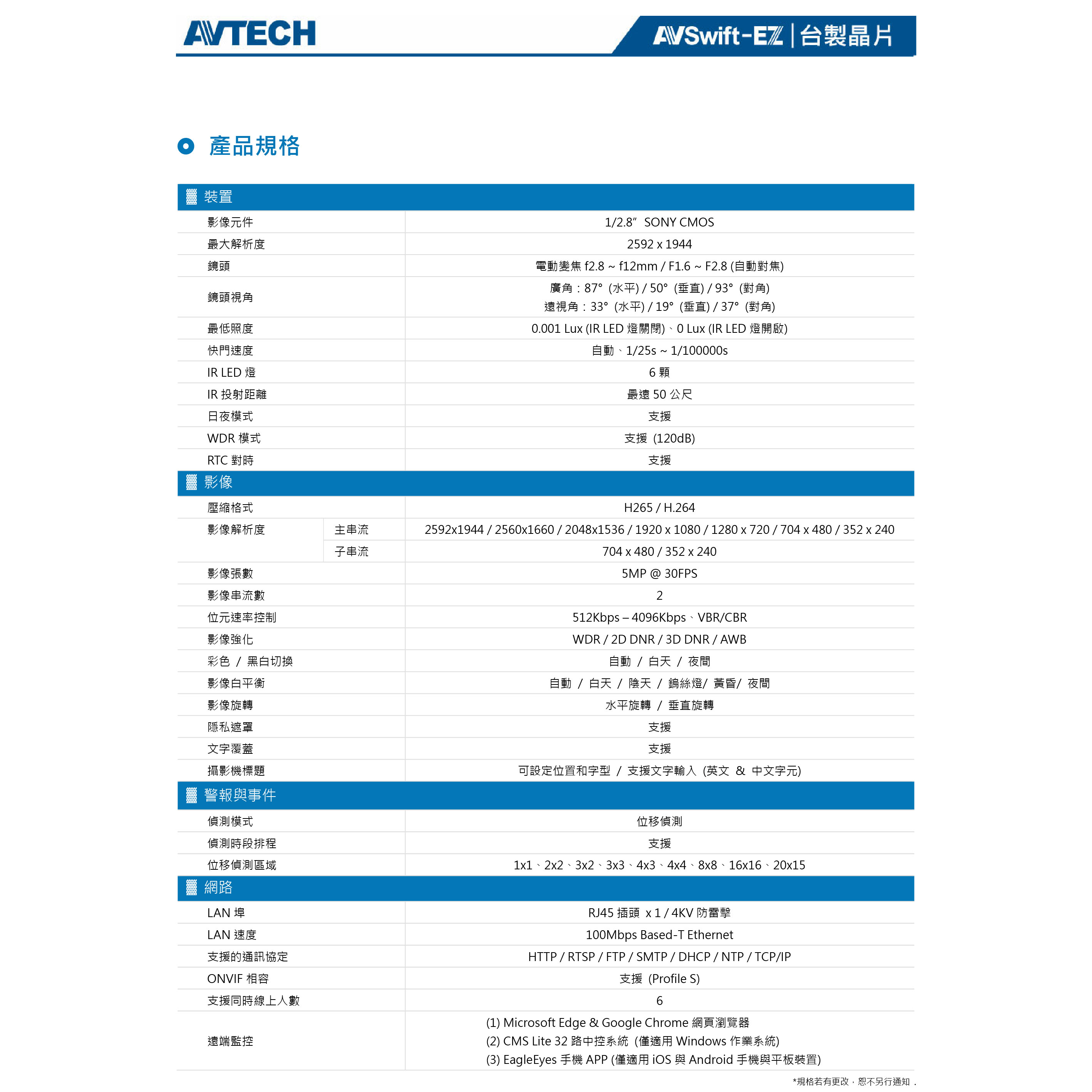 昌運監視器 AVTECH陞泰 DGM5743SVT 500萬畫素 電動變焦防護罩型紅外線網路攝影機 星光級夜視功能