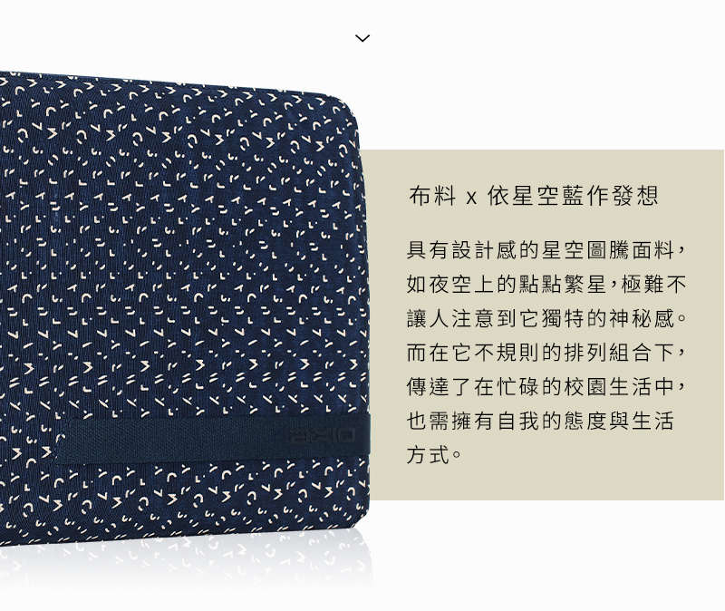 針對擁有比電的新鮮人所設計的包款!底紋星空圖騰面料與超柔順的單手織帶設計,是您讀書與辦公的終極伴侶。