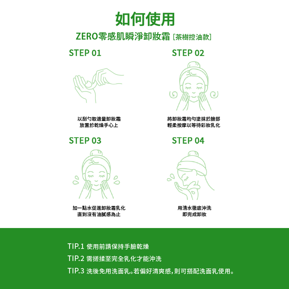 【使用方法】 1.維持手部與臉部乾爽,以挖勺取適量於臉部 2.以畫圈方式按摩全臉使瞬卸凝霜充分與彩妝污垢融合 3.以紙巾擦拭或清水洗淨