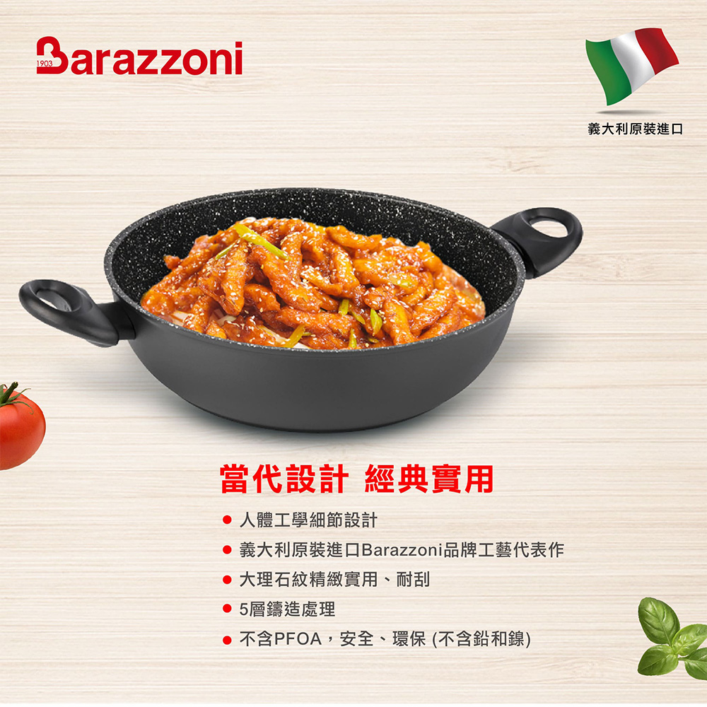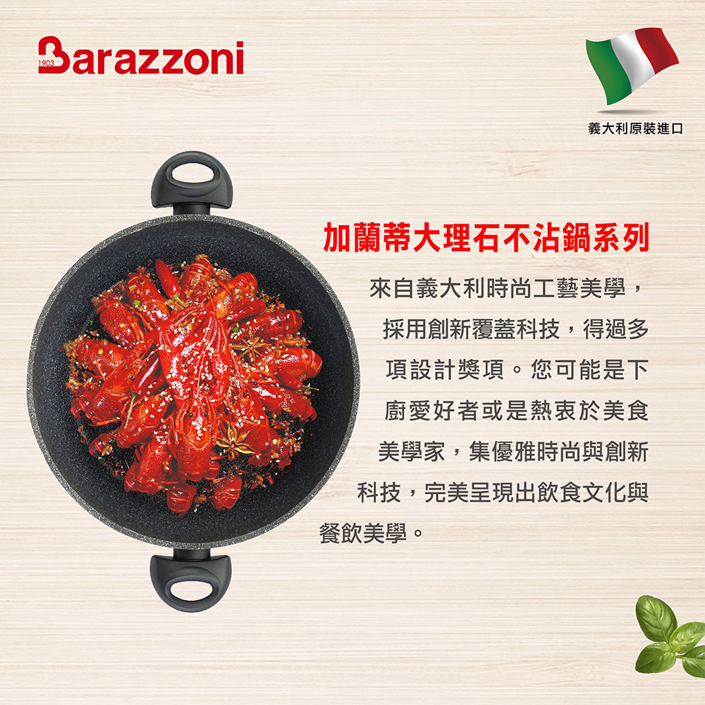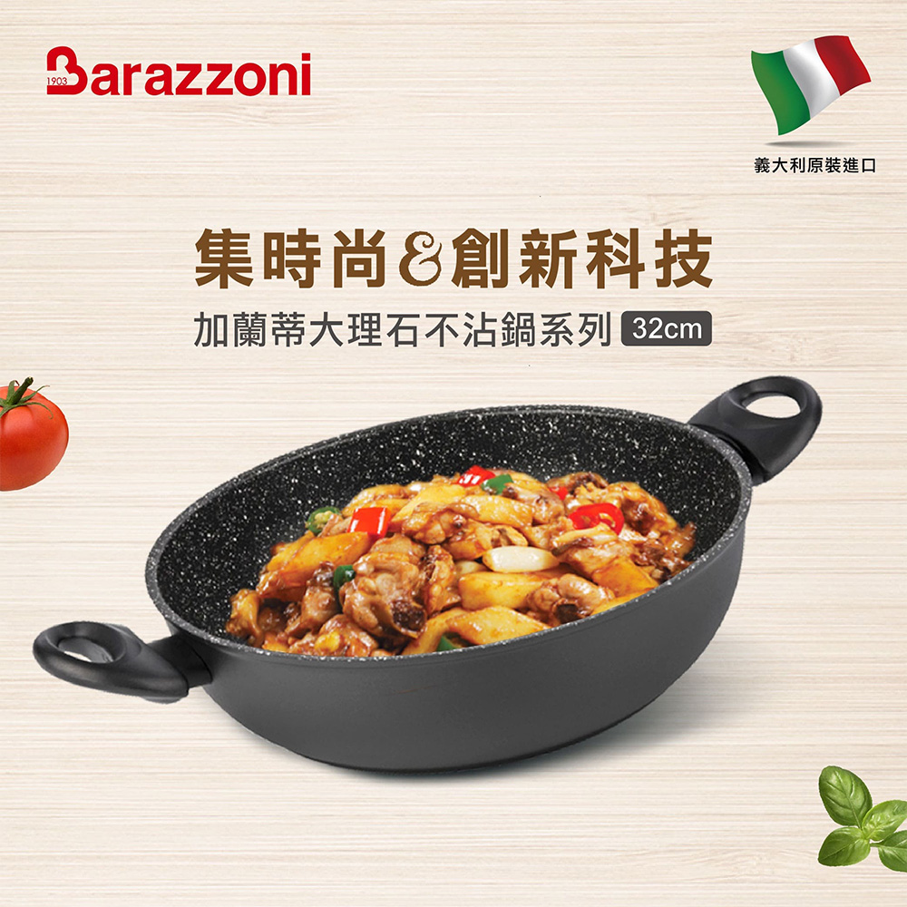 【義大利Barazzoni】IH導磁加蘭蒂大理石不沾鍋/炒鍋32cm-雙耳(義大利原裝進口) 不沾炒鍋