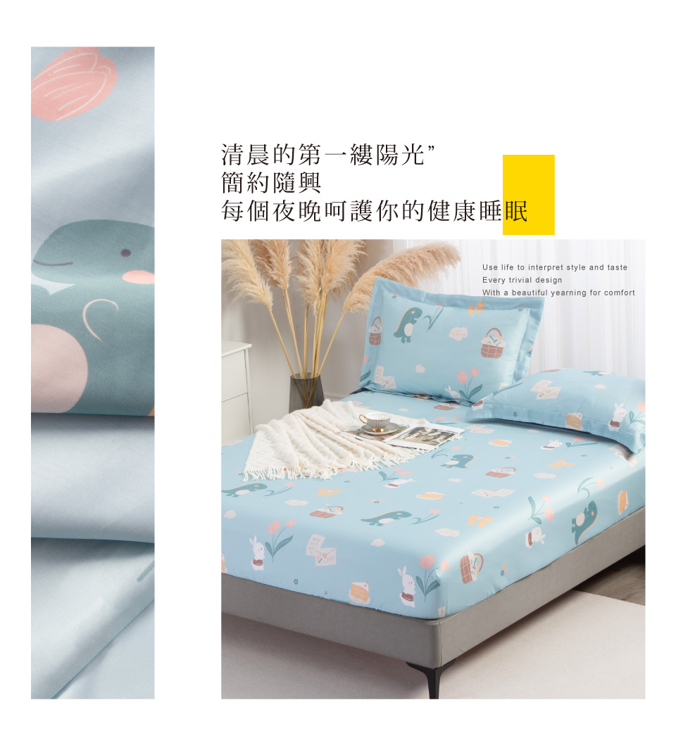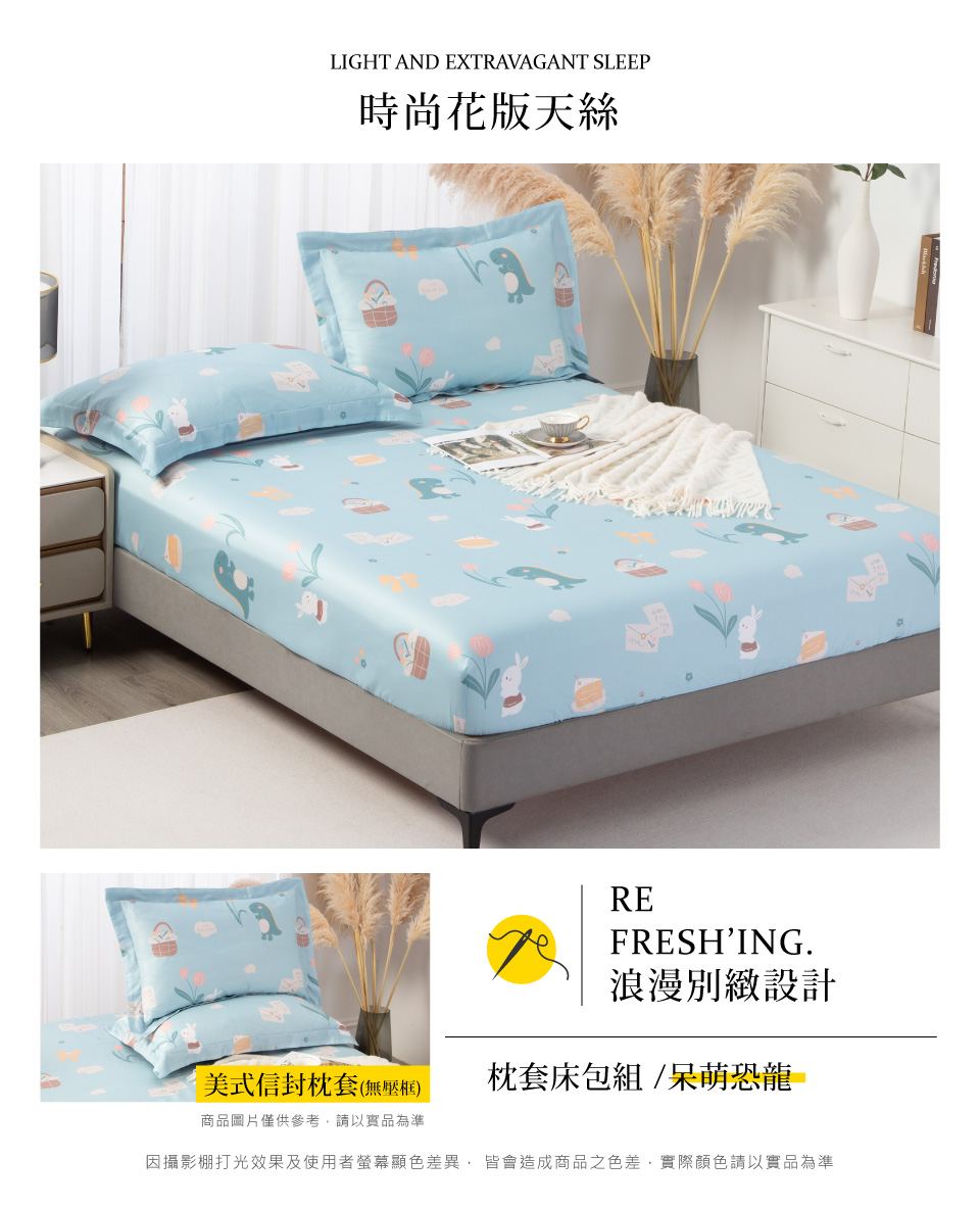 【Betrise】 Cute Dinosaur | Fashionable Floral 60s Tencel Pillowcase and Fitted Sheet Set - Single