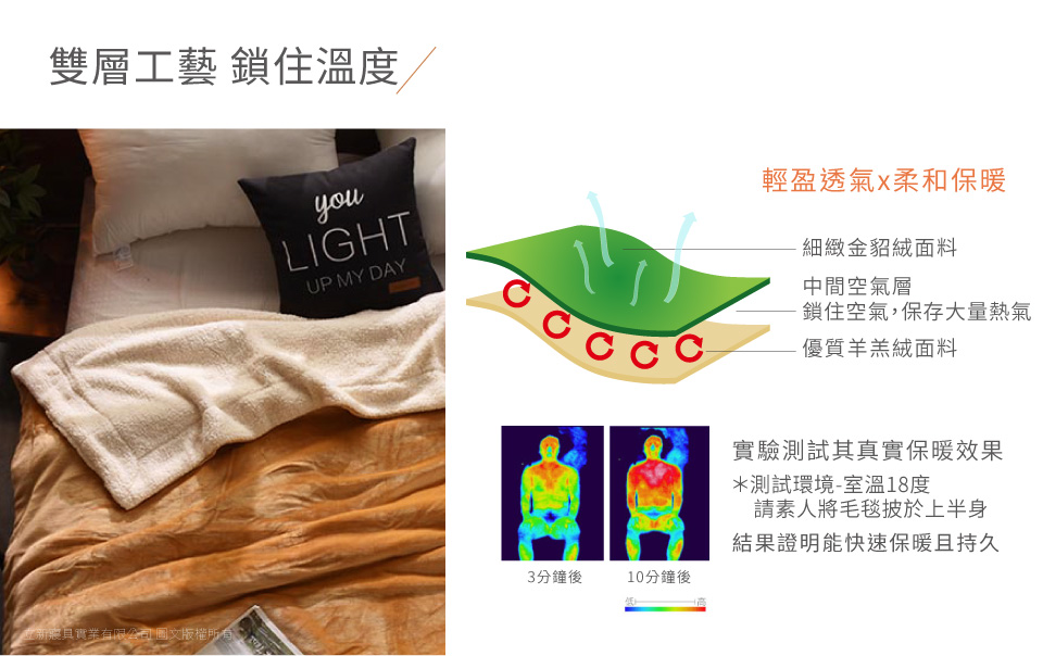 ☆升級-金貂絨X羊羔絨雙層設計☆510g面料 柔細親膚 溫暖觸感☆抗靜電 創新領先採用細絨品質