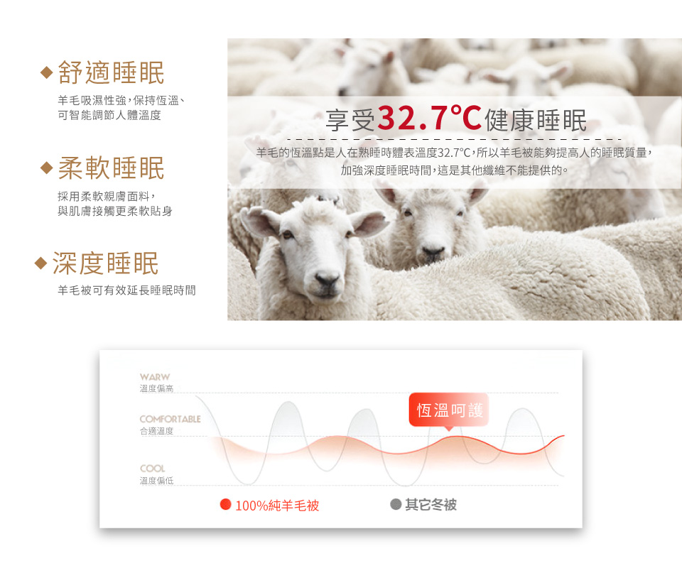 ☆100%純羊毛 國際羊毛局認證☆吸濕透氣,調節體溫恆溫保暖☆彈力蓬鬆柔軟,服貼性高