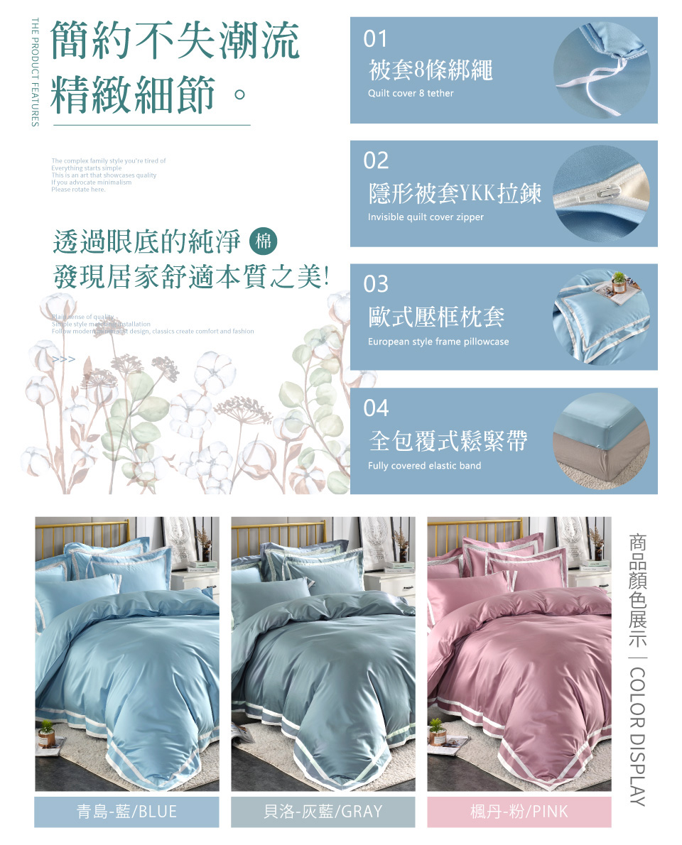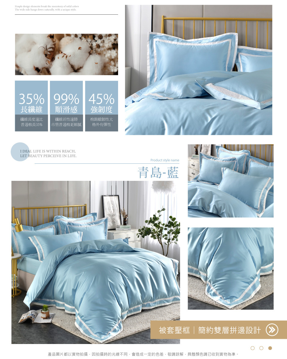 ◆商品組合:雙人薄床包x1+歐式壓框薄被套x1+歐式壓框薄枕套x2;共4件/組