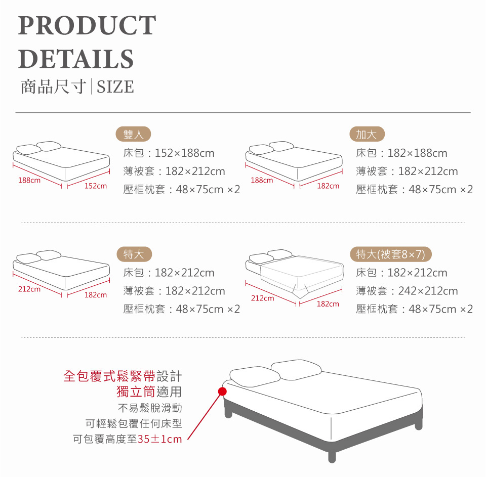 ◆雙人薄床包x1-5x6.2尺(152x188公分) /可包覆床墊高度:35±1公分