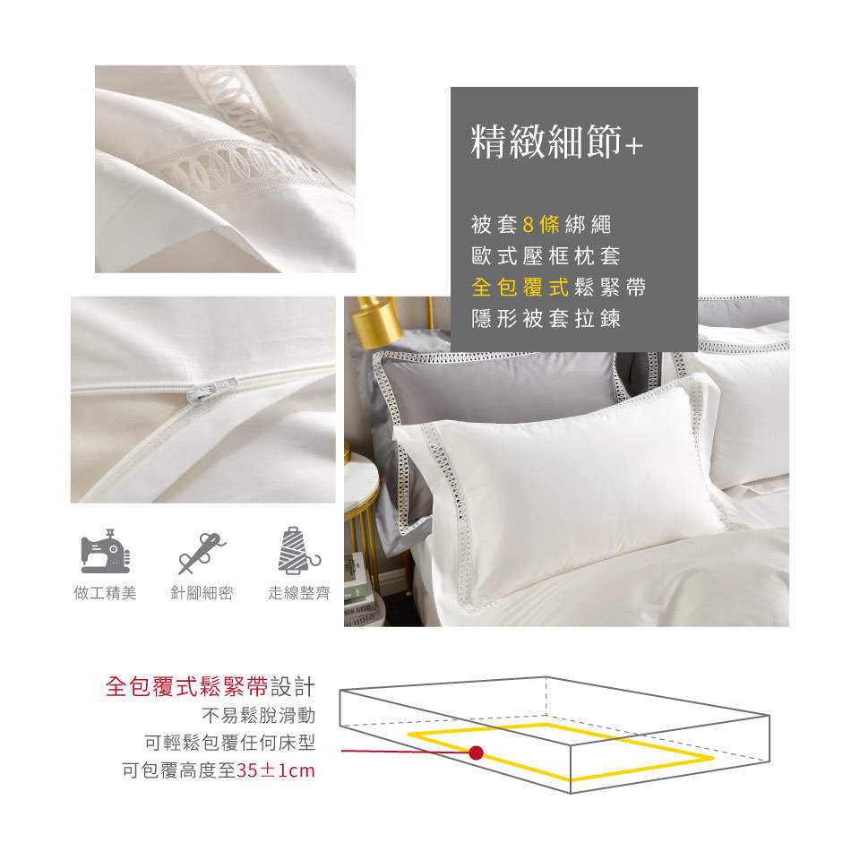 ☆被枕套壓框設計全包式鬆緊帶床包