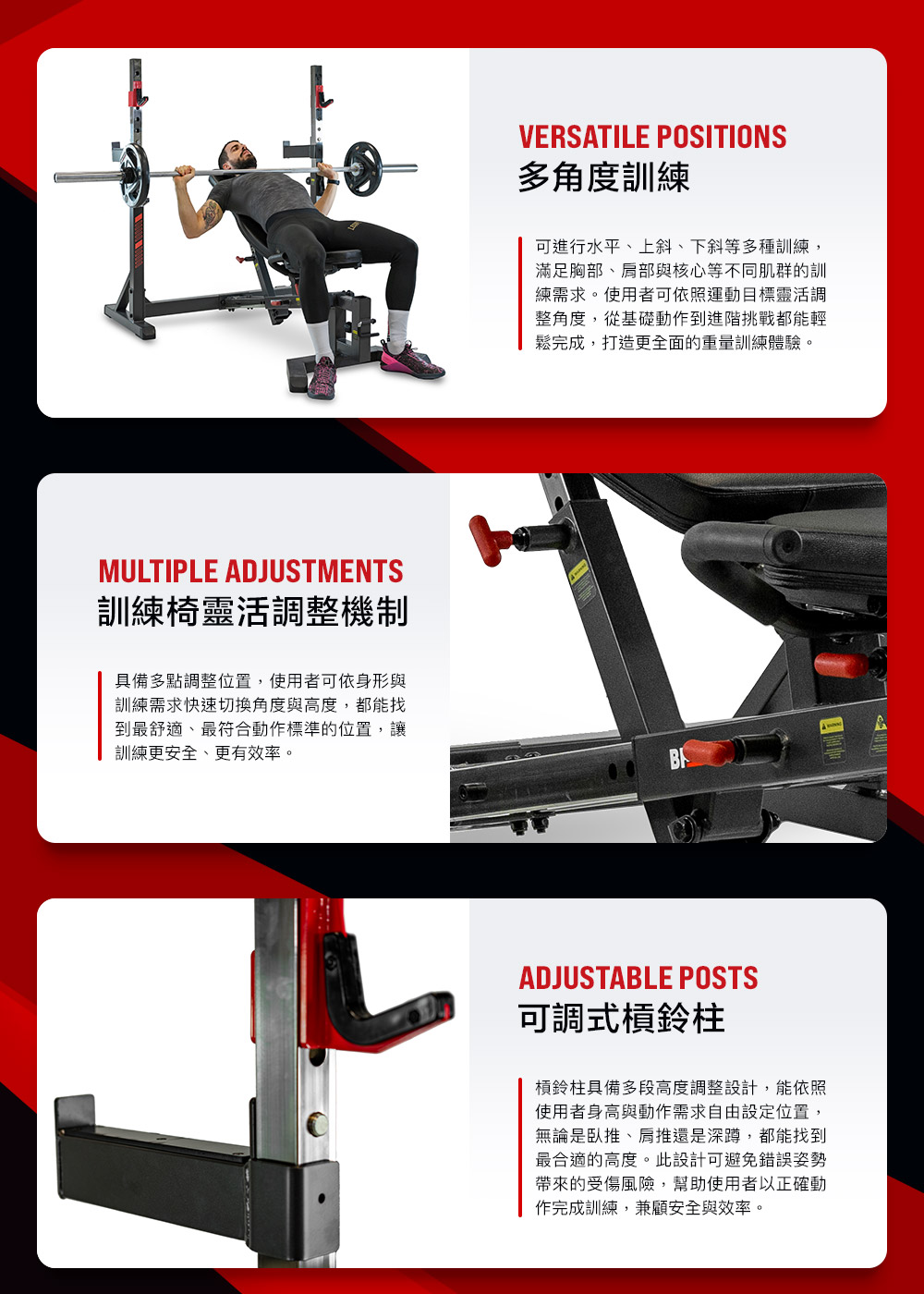▲可調式槓鈴柱,確保訓練姿勢正確