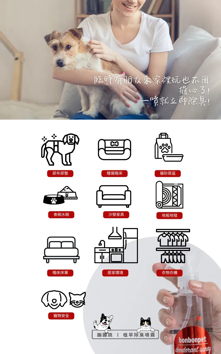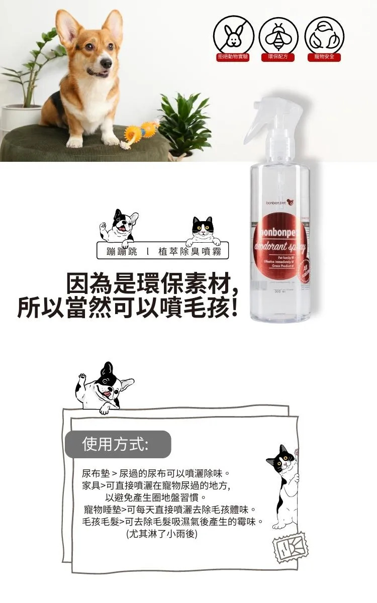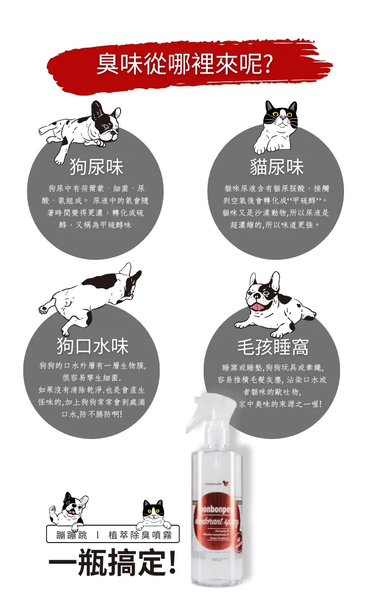 ◎ 獨家採用綠茶萃取,一噴就清新◎ 甜菜根萃取,自然分解臭味◎ 環保安全成分,舔到無害,狗貓家庭適用 ,,◎ 噴灑於環境或毛孩身上(身上及肛門腺等)有效消除異味◎ 環保除臭配方, 純天然成分,不含酒精、防腐劑、無毒低敏配方◎ 可搭配其他居家清潔 一起使用 , 讓異味有效遠離