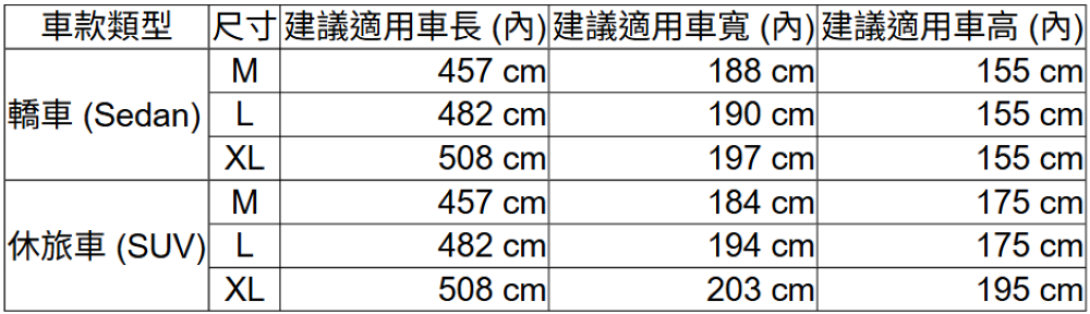 規格說明‧ 品牌:BOSITE ‧ 品名:防水隔熱車罩‧ 產地:中國製造 (台灣專業監製)‧ 顏色:宇宙銀標準款‧ 材質:外層強化PVC / 內層高密度針刺棉‧ 尺寸說明:您可以參考上方的規格表,或是直接點擊下方連結:
