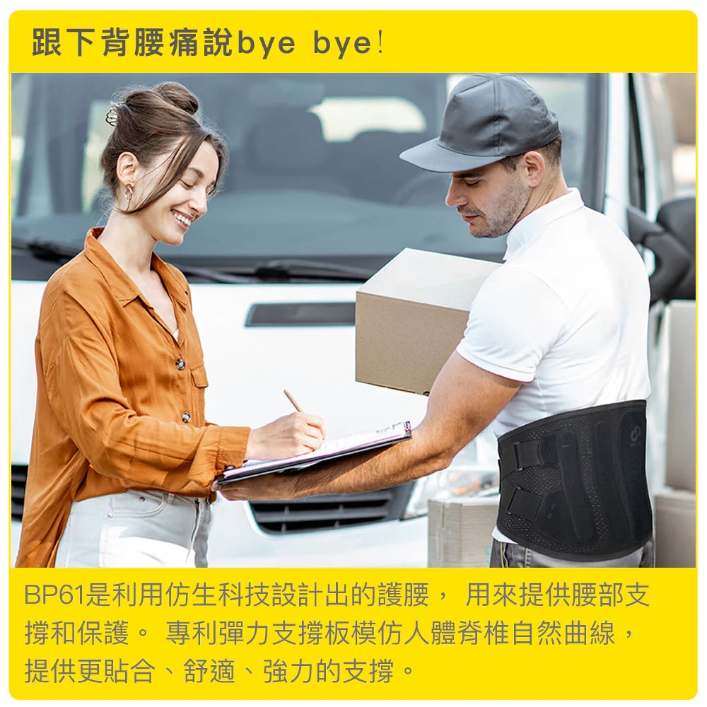 ●仿生骨支撐成對的金屬支撐條和仿生骨,結合堅固與彈性的軟硬元素,提供良好的支撐並平衡腰部負重●加大包覆範圍支撐下背部和肌肉群,使其處於中立位置。特殊彈力網布具有絕佳彈性,包覆卻不限制身體活動●均勻平衡加壓均勻加壓能促進正確的壓力分佈,平衡支撐腰椎負重,減輕腰部的壓力,幫助防止受傷。維持良好的姿勢,適合需長時間站立及進行體力活動的人●超省力拉帶調整輕鬆採用D形環扣,兩段式智能拉帶,即使是手臂無力的人也可用最省力的方式,針對不同身型喜好調節鬆緊度1、商品組合/規格:BRACOO奔酷腰部(仿生骨曲線 M) BP612、醫療器材許可證◆核定品名: "奔酷"軀幹裝具 (未滅菌)◆核准字號:衛部醫器陸輸壹登字第004321號◆藥商名稱:康璽國際有限公司◆製造廠名稱:COMFYSTONE CO., LTD◆製造廠地址:NORTH HEAD TANGLEI RD, INDUSTRIAL DEMOSTRATION AREA, RADAR SCIENCE & TECHNOLOGY ZONE, TANGGOU TOWN, SHUYANG COUNTY, SUQIAN CITY, JIANGSU PROVINCE 223611, CHINA3、藥商許可執照◆醫材許可執照字號:中市醫材販 字第 MD6203022382 號◆藥商名稱:佑全藥品股份有限公司◆藥商地址:台中市西屯區福和里台灣大道四段925號20樓之1◆諮詢專線電話:0800-046-111 / 0800-557-6884、製造日期:詳見商品包裝標示及說明5、有效期間或保存期限:詳見商品包裝標示及說明6、消費者使用前應詳閱醫療器材說明書 ◆ 注意事項1.產品彈性壓力及功能隨穿戴時間及頻率遞減,為確保產品效用達最大發揮,建議定期更換。2.穿戴後如有不適,請即停止使用並就醫診療。3.清潔用中性洗劑沖洗後風乾,請勿日照、熱烘。4.購買前請先檢查產品有無瑕疵;個人貼身用品,弄髒、毀損或洗滌過後,恕無法更換。 消費者使用前應詳閱醫療器材說明書