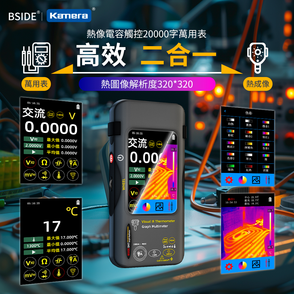 ● 高效二合一:結合專業萬用表與熱成像儀兩種功能於一身,一機多用,大幅節省攜帶與作業空間。不論是電氣檢測還是熱能診斷,都能快速應對,提升工作效率。