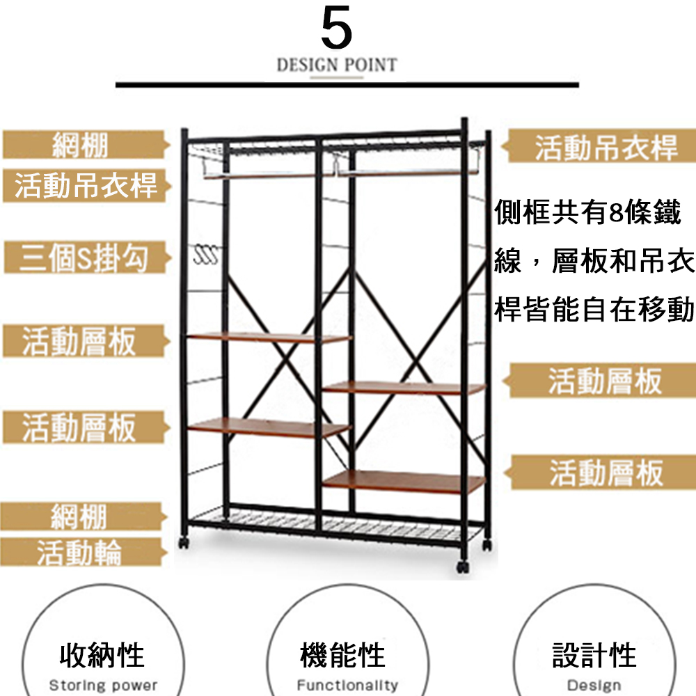 《C&B》Justice移動式置物衣櫥架-寬119cm(台灣生產)
