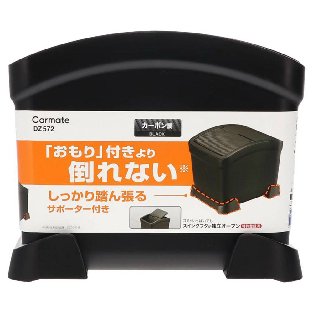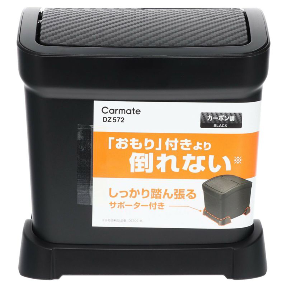 .品名:CARMATE 防傾倒防滑2.6L垃圾桶.尺寸:H160×W200×D160(mm).顏色:黑色/碳纖紋蓋.材質:樹脂(PP).重量:390g.數量:1入.產地:日本