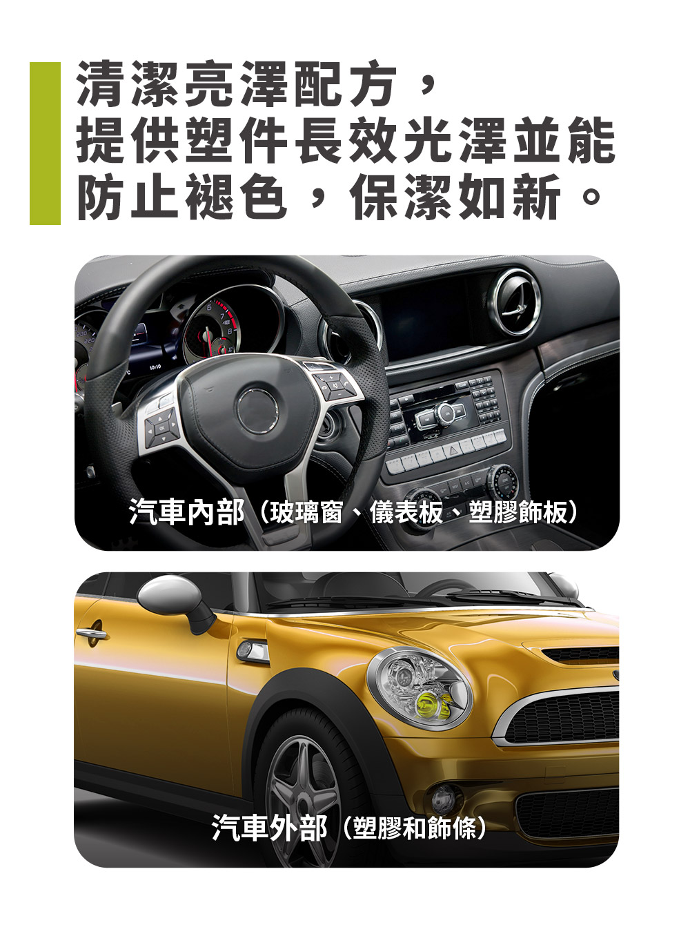 商品介紹. 多用途清潔劑,可用於汽車內部和外部清潔。. 內裝-使用在硬質的表面,可清潔玻璃窗、儀表板、塑膠飾板的灰塵和油污。. 外觀-適用於全部的塑膠和飾條,去除表面髒污和油污。