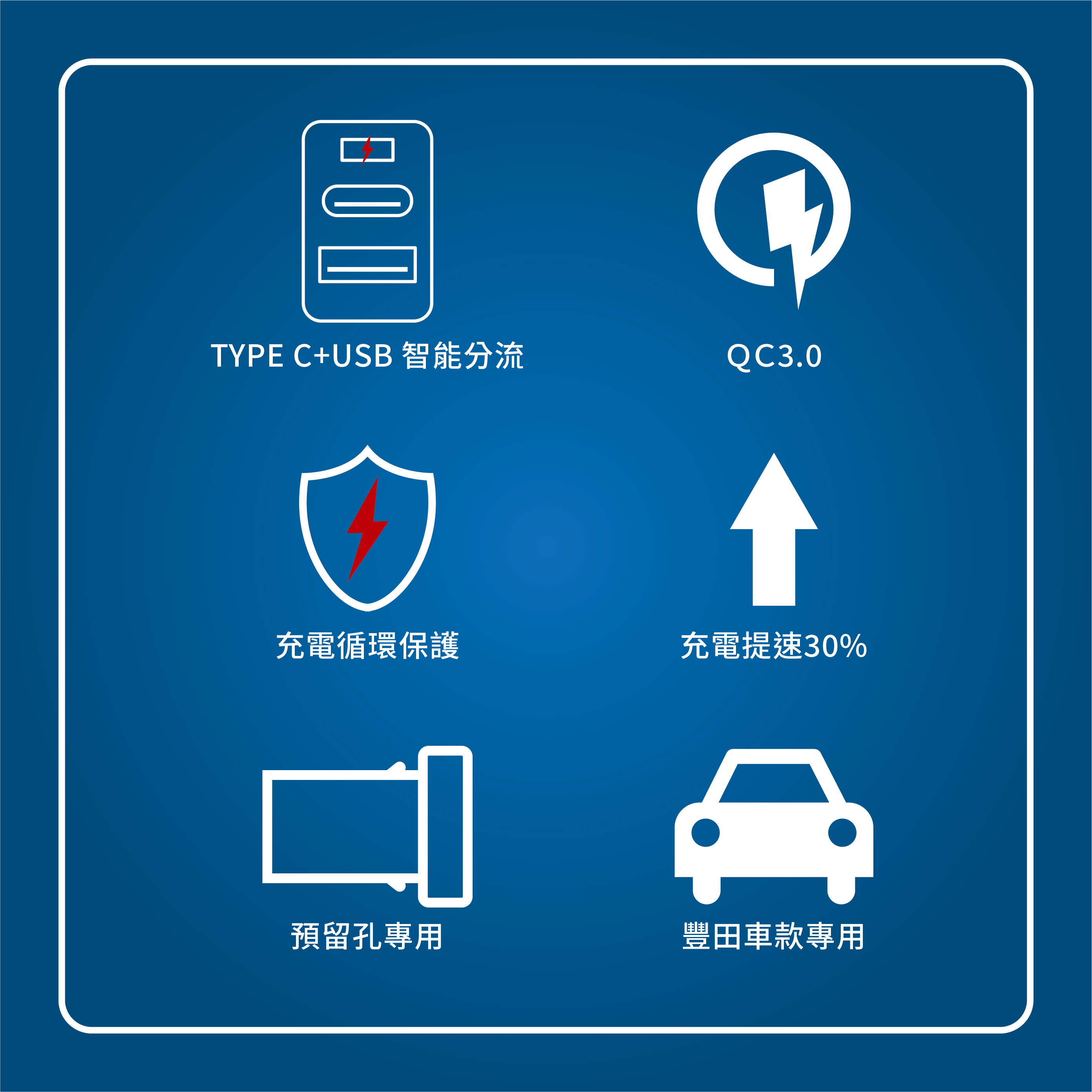 ★原車預留孔位直接安裝!充電速度快!