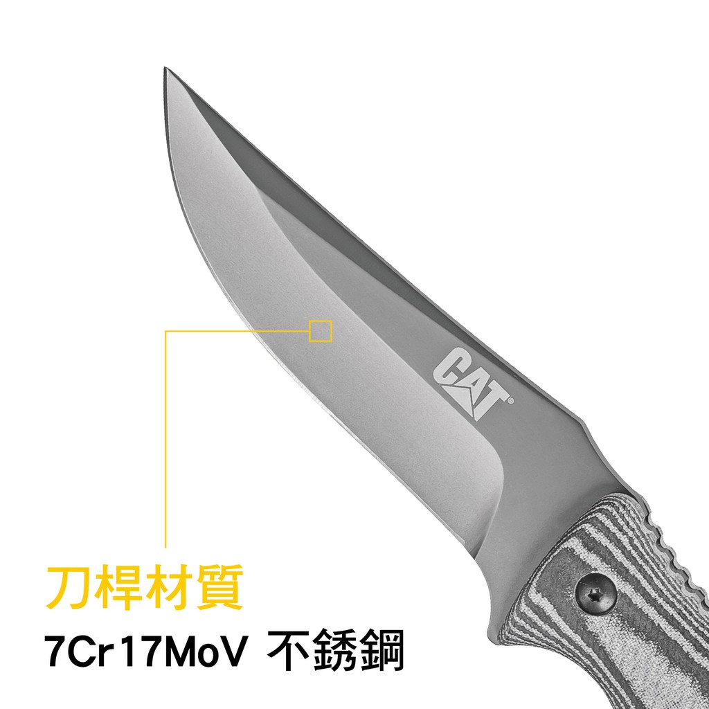 CAT工具戰術直刀採用頂級Micarta手炳結合了耐用、輕便和時尚於一體,刀刃採用7Cr17MoV 合金鋼具有高硬度和超強韌性,使折疊刀極為鋒利而又耐用,可做為安全防身工具、登山露營刀與戰術刀 使用。