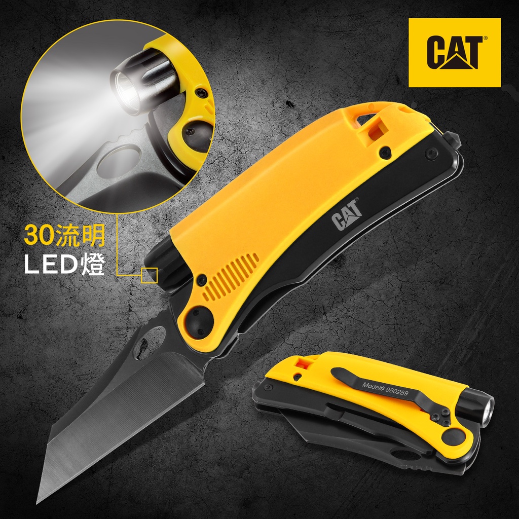 CAT工具LED手電筒折疊刀,刀桿選用超高硬度不銹鋼材質,鋒利無比,可輕鬆升任您的安全防生工具、戰術小刀、登山露營摺疊刀。