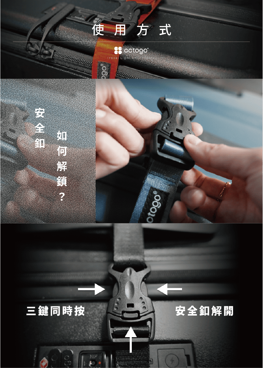 行李太多?這一扣,全部搞定。cctogo行李掛鉤釦,選用安全扣設計,穩固耐用不脫落,適用各式行李箱、手提袋、後背包、甚至嬰兒車與推車。✔︎ 安全扣件設計,穩固不脫落✔︎適用行李箱、各類包袋、嬰兒車、推車...等✔︎可調節長度,隨意吊掛✔︎9色可選,輕鬆搭配你的旅行風格每一扣,都是貼心的旅行小幫手。