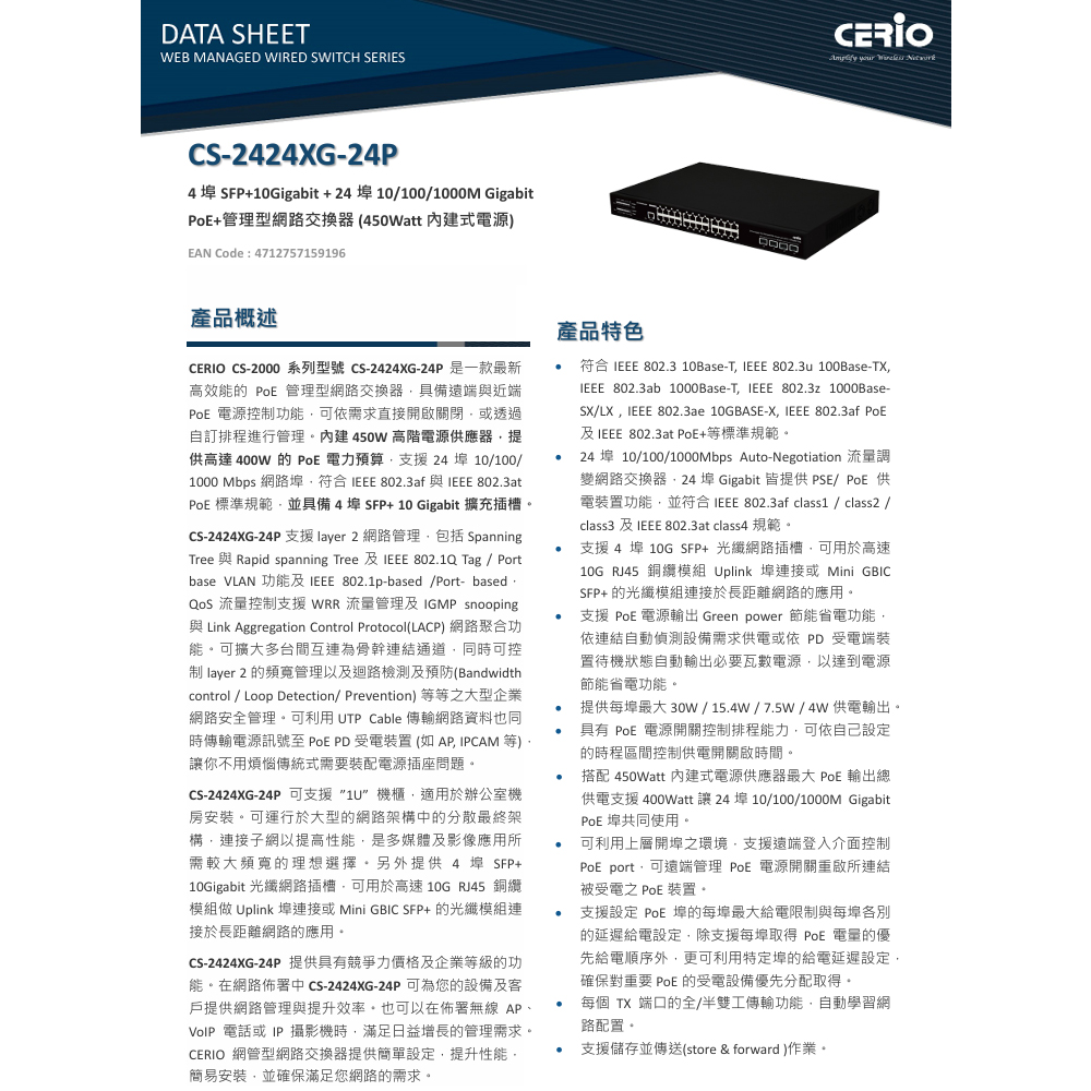 •24埠 10/100/1000Mbps Auto-Negotiation流量調變網路交換器,24埠Gigabit皆提供PSE/ PoE 供電裝置功能,並符合IEEE 802.3af class1 / class2 / class3及IEEE 802.3at class4規範。