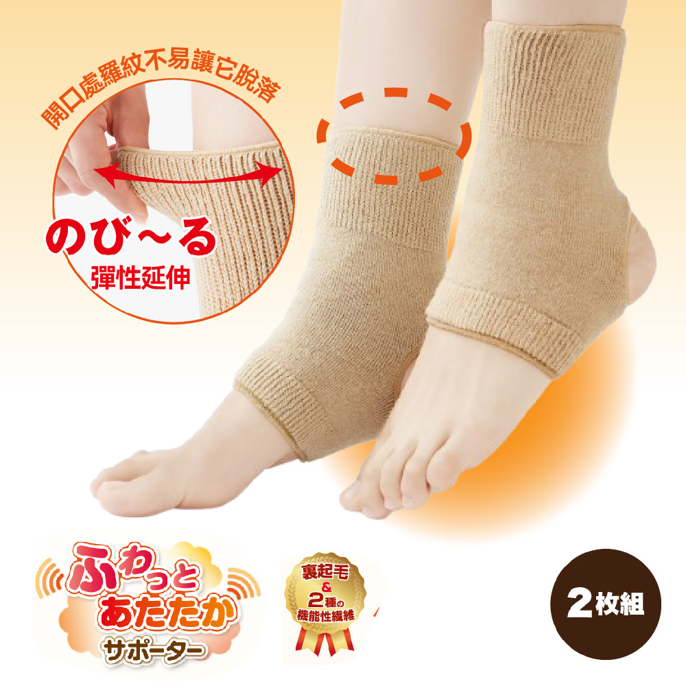 日本製【CERVIN】保暖護踝套(腳跟套)・2種類の機能性繊維を使用して編み立てた保温性に優れたあたたかサポーター・繊維の中心に温かな空気を保持することが出来る中空繊維、東レの「エアレット」を使用。 遠赤外線を放射するセラミックスをアクリル繊維に練り込んだ素材、東洋紡の「セラムA」を使用。・肌にあたる部分は裏起毛で仕上げていますのでふんわりとした優しい肌ざわりです。・冷えからくる関節のお悩みの方に、保温性のあるサポーターをつけて気になるトコロをあったかサポート・足の甲周り・履き口部分はリブ編みになっているので、着用時にフィットしてズレにくい仕様です。 ・足首や足が冷えやすくお困りの方に、足首の関節周りをしっかり温めてサポート*使用兩種功能纖維編織而成,具有優異的保溫性能的溫暖支撐物*使用東麗的[Airlet],一種可以在纖維中心保持溫暖空氣的中空纖維。東洋紡的「Ceram-A」是一種在丙烯酸纖維中混入了可發射遠紅外線的陶瓷的材料。護墊可為您感到不適的身體部位提供溫暖支撐*腳背和腳部開口處有羅紋,因此穿著時緊密貼合,不會滑落。周圍進行保暖和支撐。《注意事項》本品不具醫療效果。請勿過度勒緊,使用中、使用後若有不適,請停止使用並諮詢醫師。就寢時請勿穿戴。請勿穿戴於有傷口、皮膚炎、皮膚發癢部位,或對橡膠製品有過敏者。請勿強力拉扯,避免損壞商品。請放置於嬰幼兒不易拿取處。請勿接近火源。使用效果因人而異。材質:壓克力*聚酯纖維*其他尺寸:對應腳踝週長18-28cm腳背週長20-30cm顏色:淺褐色洗滌方式:水溫攝氏30度以下/手洗/中性洗劑/勿漂白/勿烘乾/勿熨燙/陰涼處懸掛晾乾/勿專業乾洗/輕輕擠壓過多水分後陰乾/陰涼處定型懸掛晾乾/請勿將織物長時間暴露在陽光或螢光燈下,否則可能會導致褪色/請勿擰乾織物、壓洗產地:日本製國際條碼:4985697235828