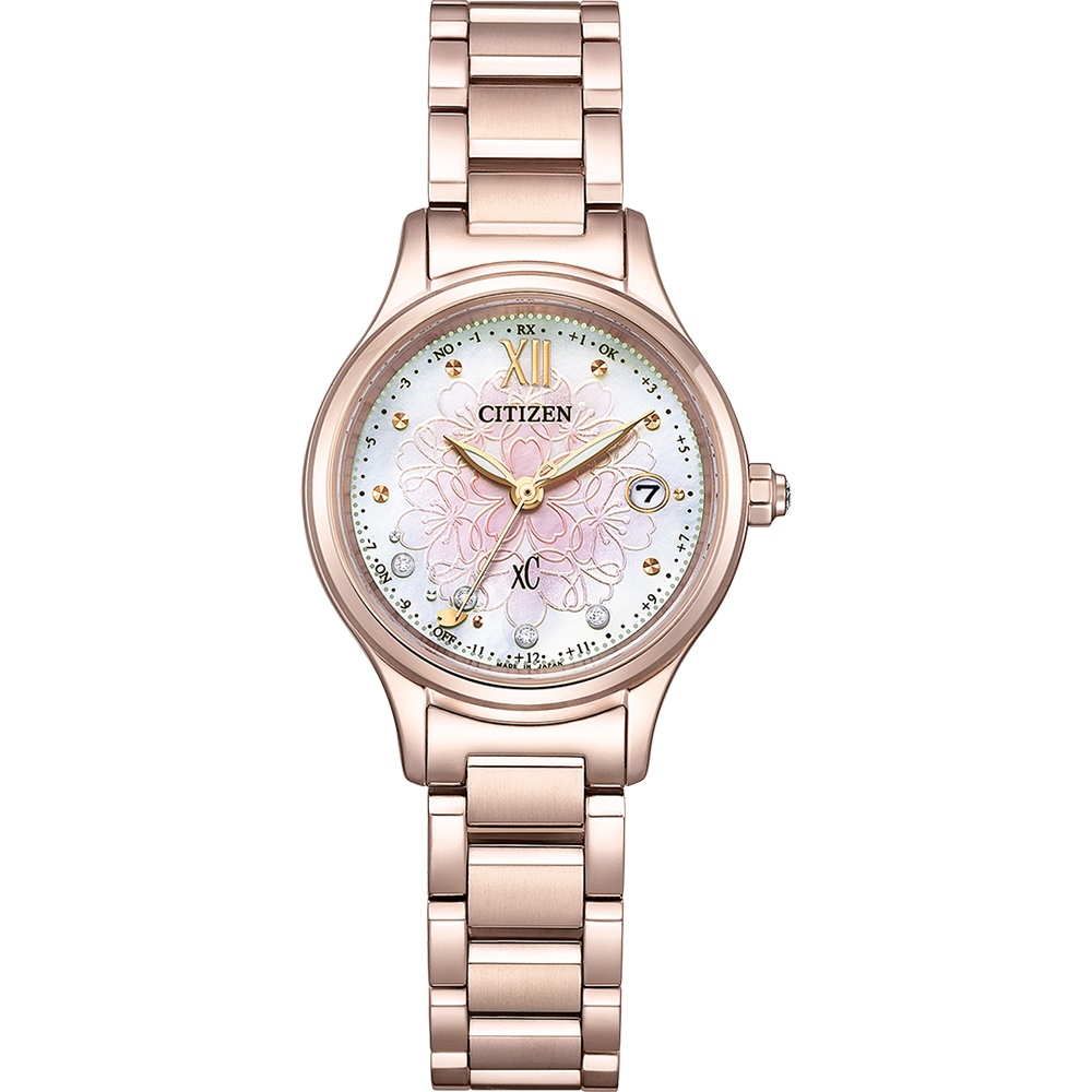 CITIZEN 星辰 XC 櫻花粉紅金 鈦 鑽石光動能電波女錶 ES9497-88X